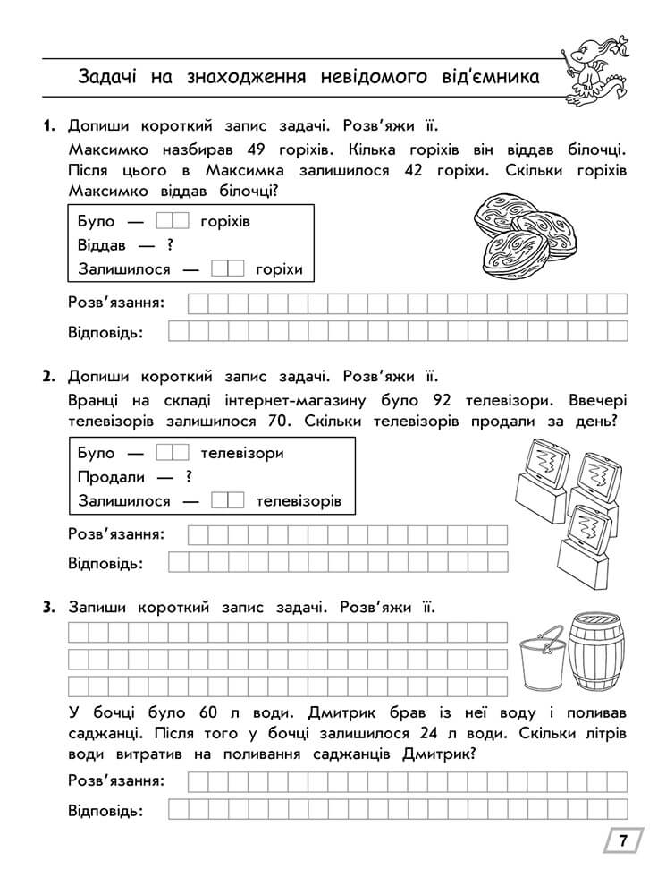 Тренажер з математики. Прості та складені задачі. 2 клас