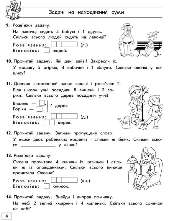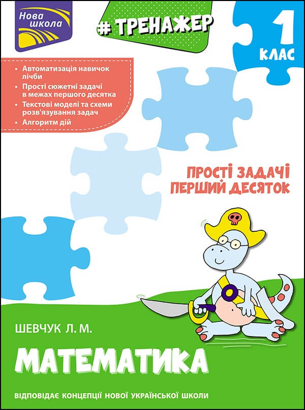 ВІДПОВІДАЄ КОНЦЕПЦІЇ НОВОЇ УКРАЇНСЬКОЇ ШКОЛИ. Серія «Нова школа» представляє лінійку тренажерів, які спрямовані на відпрацювання певних навичок, визначених і затверджених шкільною програмою. Один тренажер - одна навичка, доведена до автоматизму. Запорукою успішного навчання є сучасна методика, покладена в основу посібника і повна відповідність матеріалу оновленим державним програмам. Завдяки цьому тренажеру дитина: ​ відпрацює уміння розв'язувати прості сюжетні задачі в межах першого десятка; чітко сформує поняття про задачу, її структурні елементи, сутність процесу розв'язання; закріпить навички виконання дій за алгоритмом; навчиться застосовувати навички лічби на практиці. Посібник можна використовувати як на уроках, так і для самостійної роботи вдома.