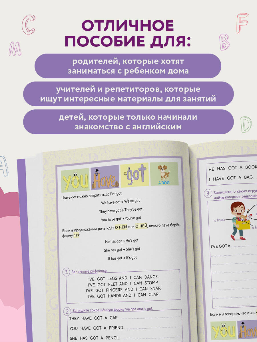Грамматика английского языка может быть простой, увлекательной и понятной - без зубрежки и скучной теории. С этим тренажером вы сможете помочь ребенку легко освоить правила, познакомиться с артиклями, частями речи и превратить занятия в настоящую игру. Этот тренажер создан для того, чтобы сделать обучение ребенка легким и интересным. Здесь грамматика в буквальном смысле оживает! Глагол Can - настоящий «умелец», частица Not - вредная «вредина», а глагол Have - «богач», у которого все есть. Грамматические понятия становятся запоминающимися персонажами с историями, которые дети легко понимают и с удовольствием запоминают. Сложные темы перестают пугать, а начинают удивлять и радовать! Об авторе: Марият Меджидова - преподаватель со стажем преподавания более 17 лет, основатель экспертного сообщества для преподавателей Elementary_English. В основе методики - игровая мнемоническая техника, с которой ребенок легко и быстро начинает понимать логику английского языка! С первых уроков ваш ребенок сможет: * Рассказывать о том, что он делает каждый день (`I play, I eat`). * Говорить о том, что он умеет или не умеет (`I can swim, I can't dance`). * Описывать, что у него есть (`I've got a cat`). * Рассказывать, какой он, его друзья или любимый персонаж (`He is brave, She is kind`). * Освоить множество других тем с помощью игровых заданий и авторских карточек. На протяжении всей книги размещены подсказки для родителей, а в конце - удобный словарик по урокам и ответы к заданиям. Занимайтесь с удовольствием вместе с ребенком!| Издательство | ООО "Издательство "Эксмо" |