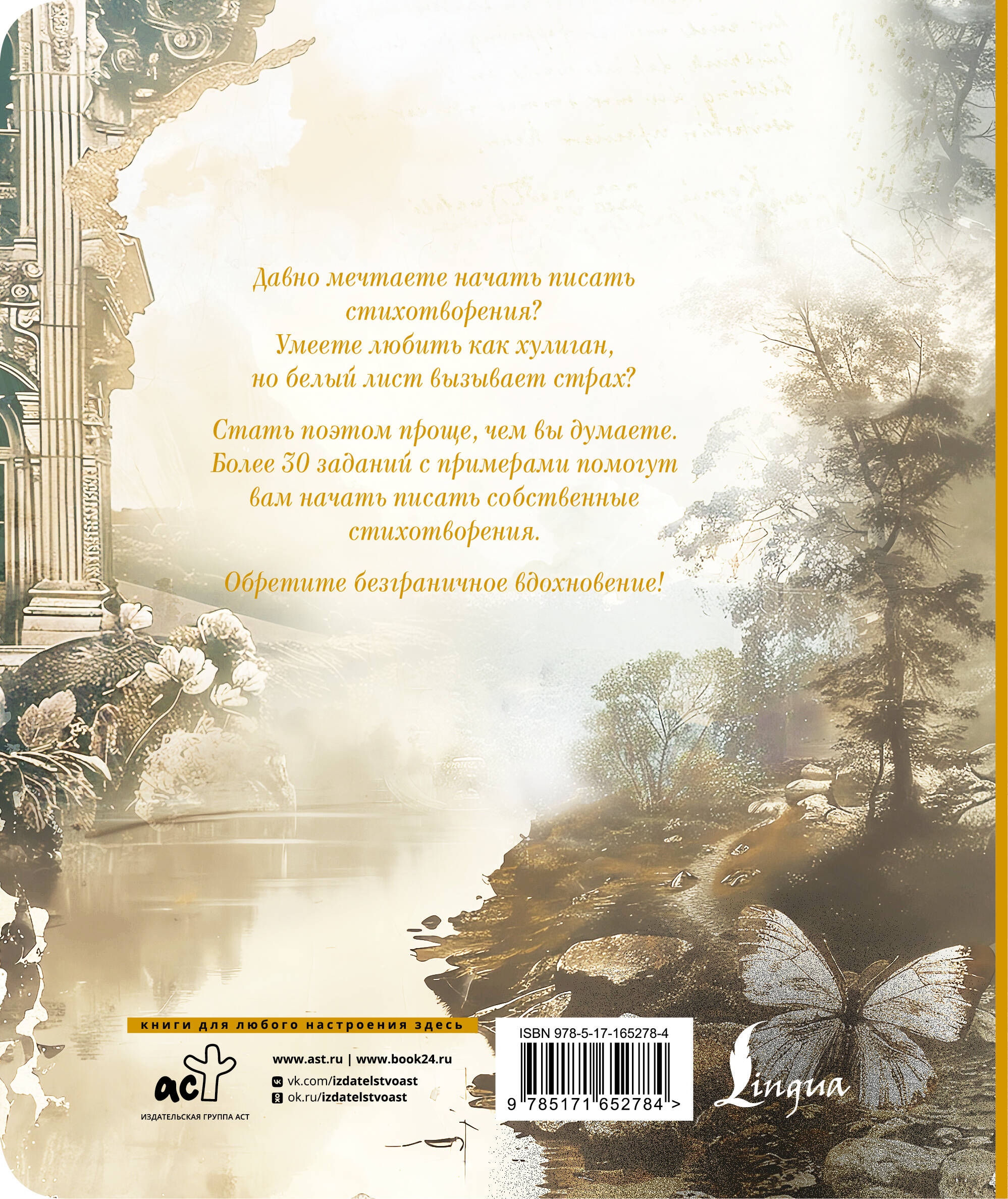 Давно мечтаете начать писать стихотворения? Боитесь белого листа? Найти вдохновение проще, чем кажется! Поэты, способные посвящать стихи банальным мелочам, признаются мастерами слова. Этот тренажёр предлагает вам небывалый челлендж по обретению вдохновения и развитию своего поэтического слога. Издание включает более 30 заданий с примерами и специальные поля для записи собственных текстов. Уникальный формат позволяет ознакомиться с разными поэтическими формами и жанрами, среди которых рубаи, стансы, хайку, натюрморт в стихах и многие другие. Оригинальные упражнения помогут найти вдохновение в самых неожиданных источниках. Тренажёр вдохновения для поэтов откроет вам мир по-новому!| Издательство | Издательство "АСТ" |