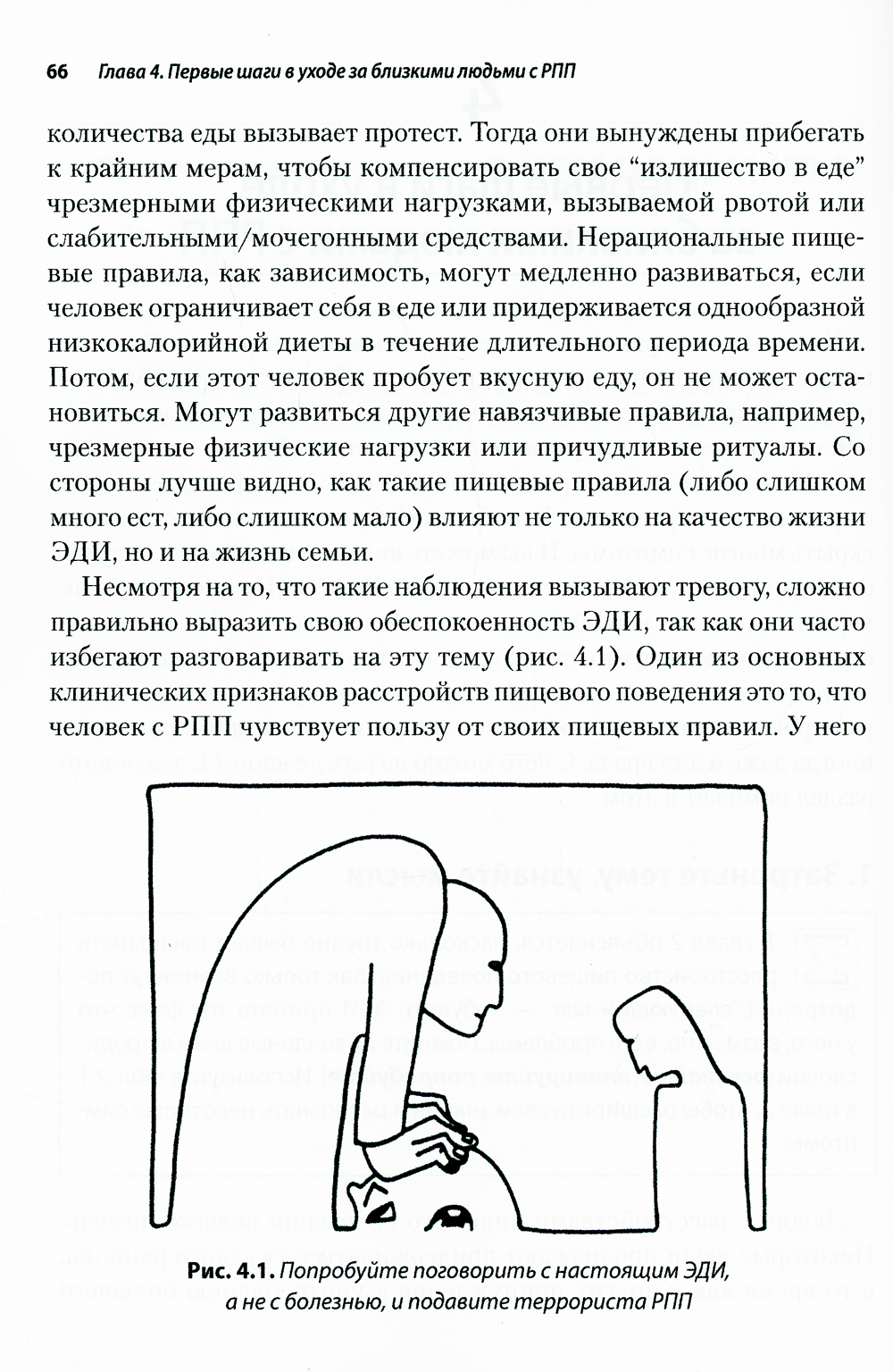 Симптомы расстройств пищевого поведения сильно влияют как на жизнь самих людей с РПП, так и на жизнь тех, кто о них заботится. Члены семьи сталкиваются с глубоким стрессом и напряжением, что означает, что их навыки эмоциональной регуляции также нарушаются. Это пособие предоставляет родственникам и профессионалам навыки и знания, необходимые для поддержки людей, страдающих расстройствами пищевого поведения, что в свою очередь поможет им освободиться от привычек, препятствующих выздоровлению. Книга базируется на комплексном подходе к уходу. В ней описаны подробные техники и стратегии, которые направлены на улучшение возможностей профессионалов и родственников оказывать поддержку своим близким.