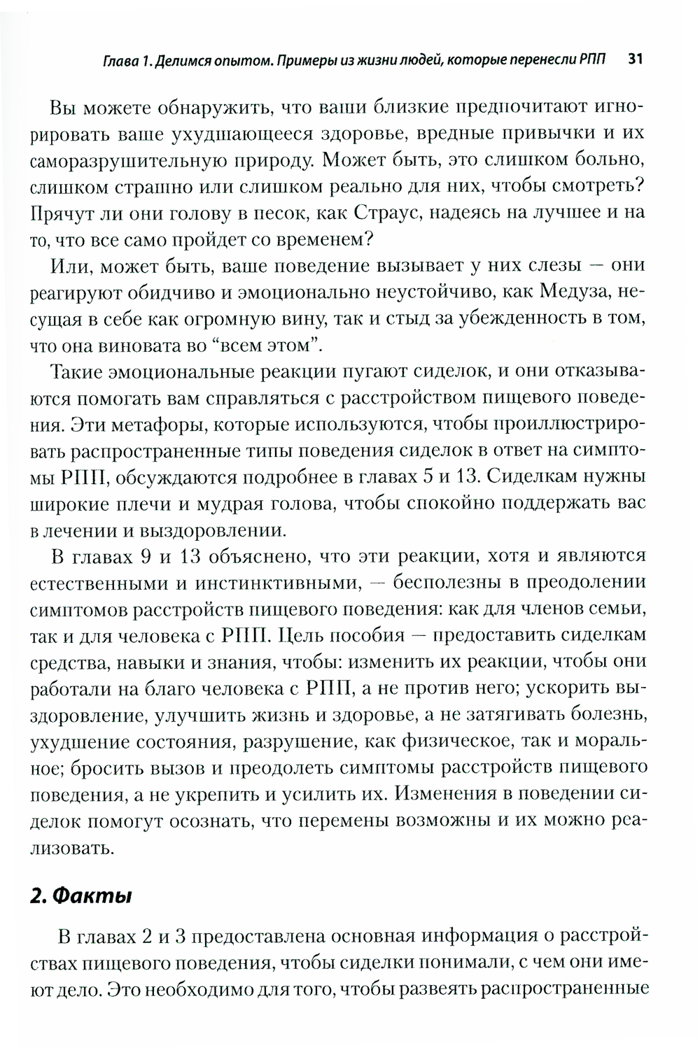Эта книга написана для родственников и медицинских работников (профессиональных и непрофессиональных сиделок), которые ухаживают за людьми с расстройствами пищевого поведения. Пособие по тренингу навыков необходимо тем, кто помогает людям справляться с симптомами расстройств пищевого поведения. Оно будет также полезно и для самого человека с РПП в качестве дополнительного справочника по его состоянию и преодолению симптомов. Перед вами обновленное издание. Благодаря данному пособию вы сможете стать компетентными в оказании поддержки человеку с РПП и помочь ему выздороветь. Если после изучения книги, вы обнаружите, что все еще испытываете трудности в уходе за человеком с РПП, обратитесь к специалисту, который поможет улучшить и закрепить обретенные навыки.