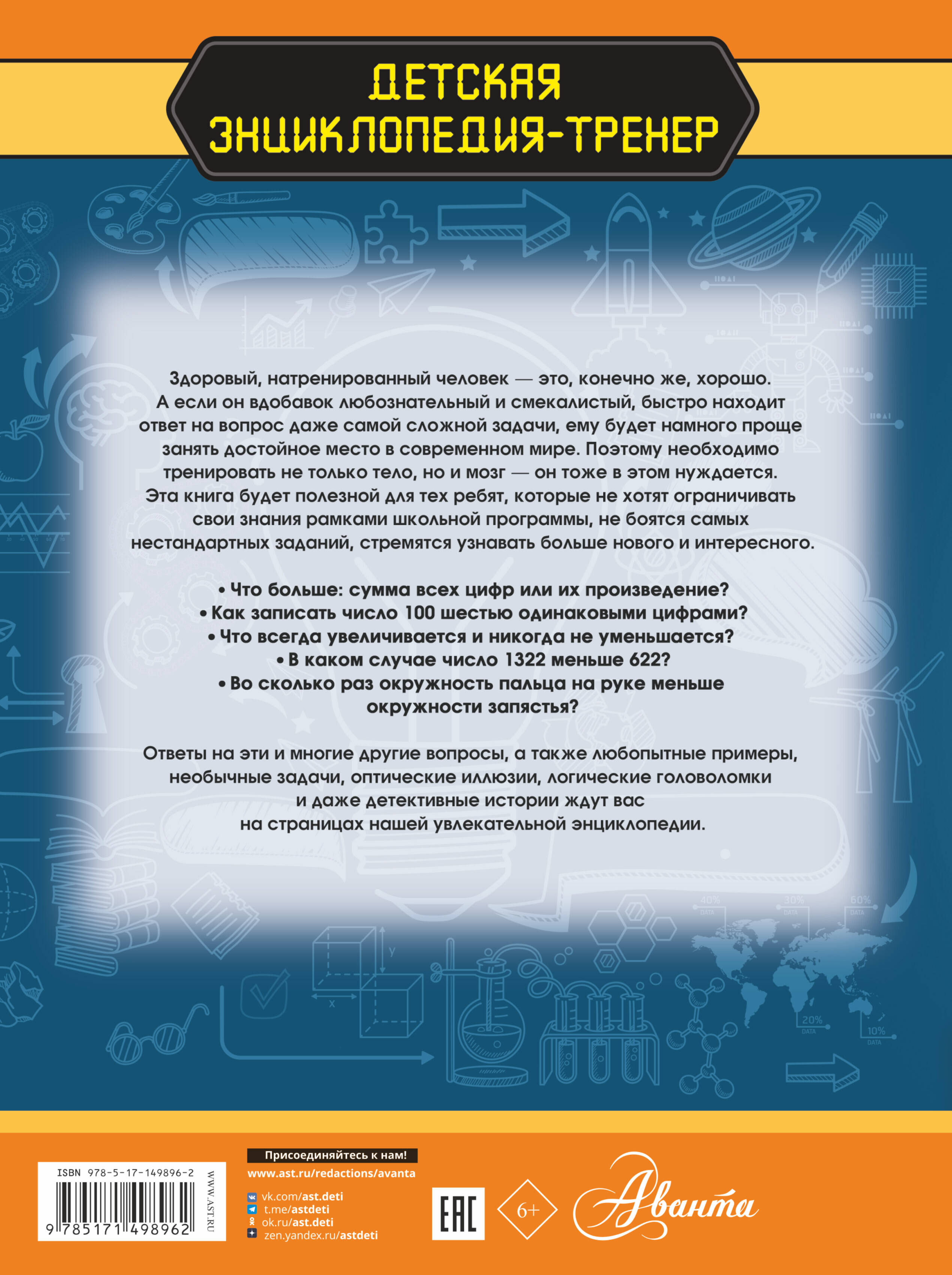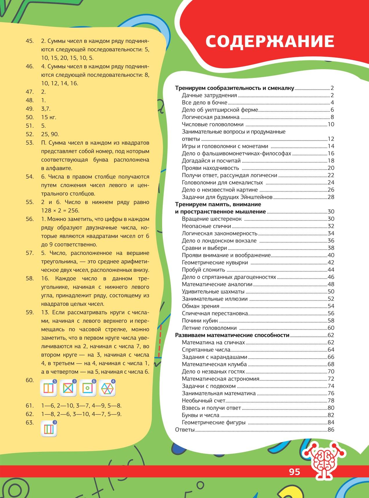 Тренировка мозга - одна из самых важных задач для человека в современном мире. Ведь иметь гибкий ум и отточенную смекалку, обладать развитой логикой и живым воображением - это то, что необходимо любому из нас каждый день. Книга будет интересна ребятам, которые не хотят ограничивать свои знания рамками школьной программы, а стремятся узнать больше нового и интересного, ищут ответы на самые непредсказуемые вопросы, постоянно развивают свой интеллект и повышают креативность. На ее страницах содержатся самые разные задания: любопытные задачи и нестандартные примеры, занимательные головоломки, оптические иллюзии и даже запутанные детективные истории. И со всем этим тебе предстоит справиться. Но и результат не заставит себя ждать - активно прокачав мозг, ты разовьешь свои ключевые способности: память, внимание и логическое мышление, что, несомненно, поможет тебе добиться успехов не только при обучении в школе, но и в жизни вообще. Для среднего школьного возраста.| Издательство | АСТ |