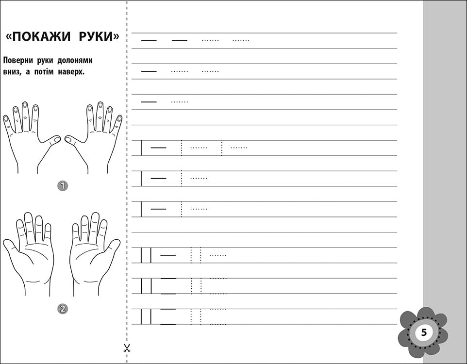 СХВАЛЕНО МОН УКРАЇНИ. Підготовка до школи включає в себе розвиток навичок письма. Зошит «Тренуємо руку. Лінійка» буде актуальний для дошкільнят 5-6 років. Опорної сіткою в даному посібнику є лінії. Дитині пропонується повторити малюнок за зразком, спочатку обвівши його по точках, а потім виконавши роботу самостійно. Якщо ви ставите питанням, як навчити дитину писати красиво і акуратно, то раннє відпрацювання навичок письма допоможе малюкові швидше виробити правильний почерк. Також в книзі представлена ​​ціла серія занять для пальчикової гімнастики. Всі вправи пов'язані між собою сюжетом, тому дитині буде цікаво і пізнавально. Підготовка до школи складається з декількох етапів, розвиток дрібної моторики - один з них. Пальчикова гімнастика допоможе зміцнити м'язи кисті, поліпшить координацію, зробить рухи більш точними і досконалими. Від уроку до уроку елементи письма ускладнюються, тому автори рекомендують заповнювати прописи послідовно, це забезпечить якісне відпрацювання навичок та інтерес дитини до завдань. Тривалість письма в такому віці не повинна перевищувати 10 -15 хвилин. Чергуючи письмові вправи з гімнастикою для рук, дитина не втомиться і буде займатися із задоволенням.
