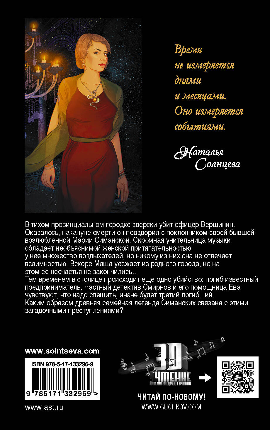 Если тебя увлекает жанр мистического детектива, ничего лучшего как романы Солнцевой сложно предложить. Они соответствуют заявленному жанру и отвечают всем требованиям, которые читатель предъявляет к увлекательной книге.| Издательство | ИЗДАТЕЛЬСТВО "АСТ" |