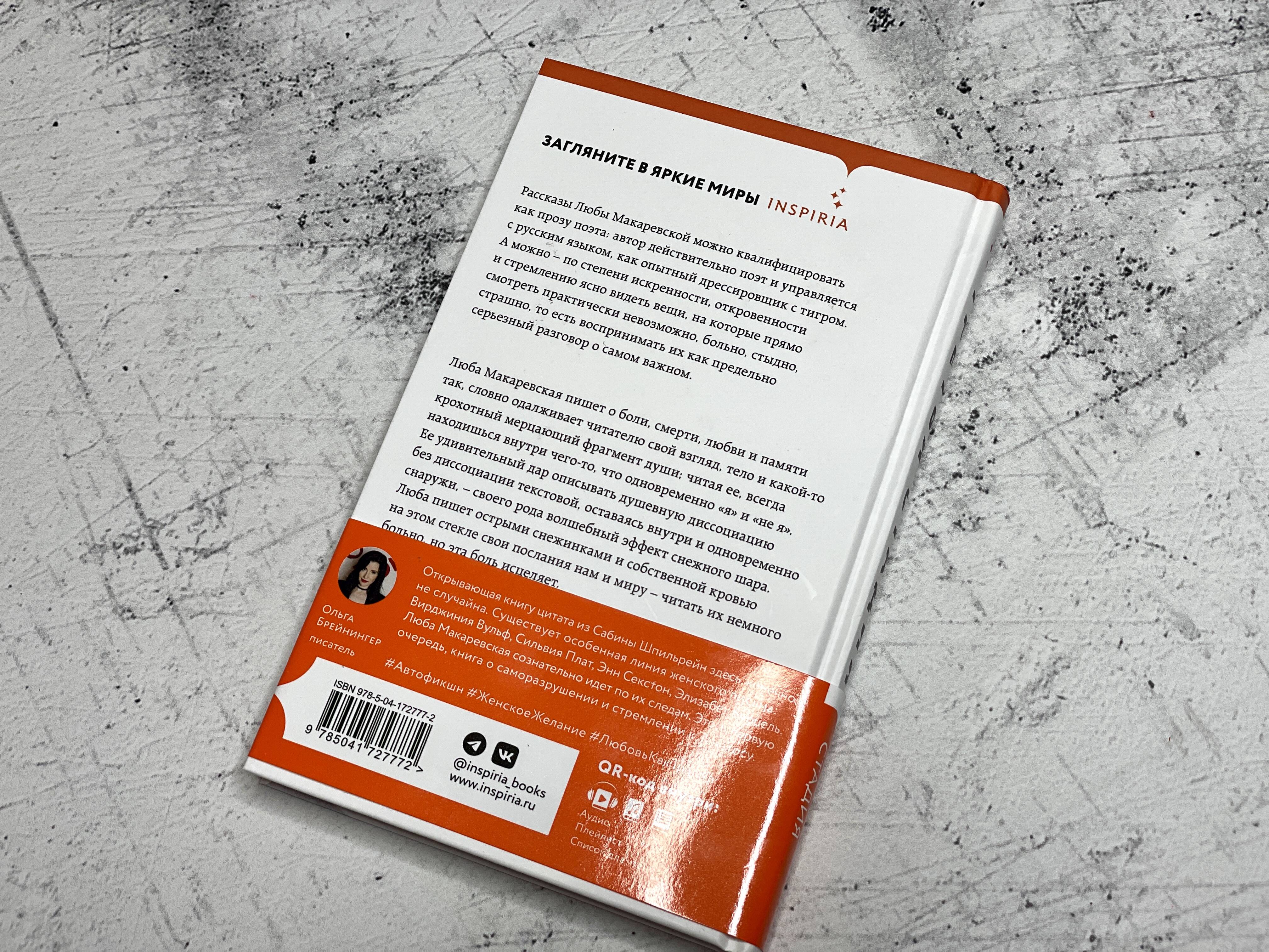 В этой книге собраны рассказы о женской сексуальности и влечении к смерти, внутри них любовное и эротическое рассматривается всегда как экзистенциальное переживание. Это глубокая и тонкая проза о психологии женщины, ее восприятии телесности, исследование внутренних конфликтов, границ, чувствительности, стыда и страха. Перед вами предельно откровенная работа о том, что обычно замалчивается, затирается, пересказывается шепотом. «Люба Макаревская пишет о боли, смерти, любви и памяти так, словно одалживает читателю свой взгляд, тело и какой-то крохотный мерцающий фрагмент души; читая ее, всегда находишься внутри чего-то, что одновременно "я" и "не я". Ее удивительный дар описывать душевную диссоциацию без диссоциации текстовой, оставаясь внутри и одновременно снаружи - своего рода волшебный эффект снежного шара. Люба пишет острыми снежинками и собственной кровью на этом стекле свои послания нам и миру - читать их немного больно, но эта боль исцеляет». - Татьяна Замировская, автор романа «Смерти. net» «Открывающая книгу цитата из Сабины Шпильрейн здесь, конечно, не случайна. Существует особенная линия женского письма: Вирджиния Вульф, Сильвия Плат, Энн Секстон, Элизабет Вурцель. Люба Макаревская сознательно идет по их следам. Это, в первую очередь, книга о саморазрушении и стремлении к Танатосу». - Ольга Брейнингер, писатель «Если представить себе, что все тени сходятся в одной точке, будет ли эта точка только невозможностью любой правды? И не хочу ли я в конце концов, чтобы огонь стер мою жадность вместе с ненасытностью моего зрения? И я снова, лежа на кровати, закрываю глаза и заключаю во тьму мир и храню в себе взгляды, кожу и мимику других - всех тех, с кем я была связана последние месяцы, и я наконец исчезаю. Мое зрение становится больше меня самой, оно зачеркивает меня, словно морская волна в преддверии то ли ядерной войны, то ли русской зимы, что для сознания почти всегда одно и то же».| Издательство | ООО "Издательство "Эксмо" |