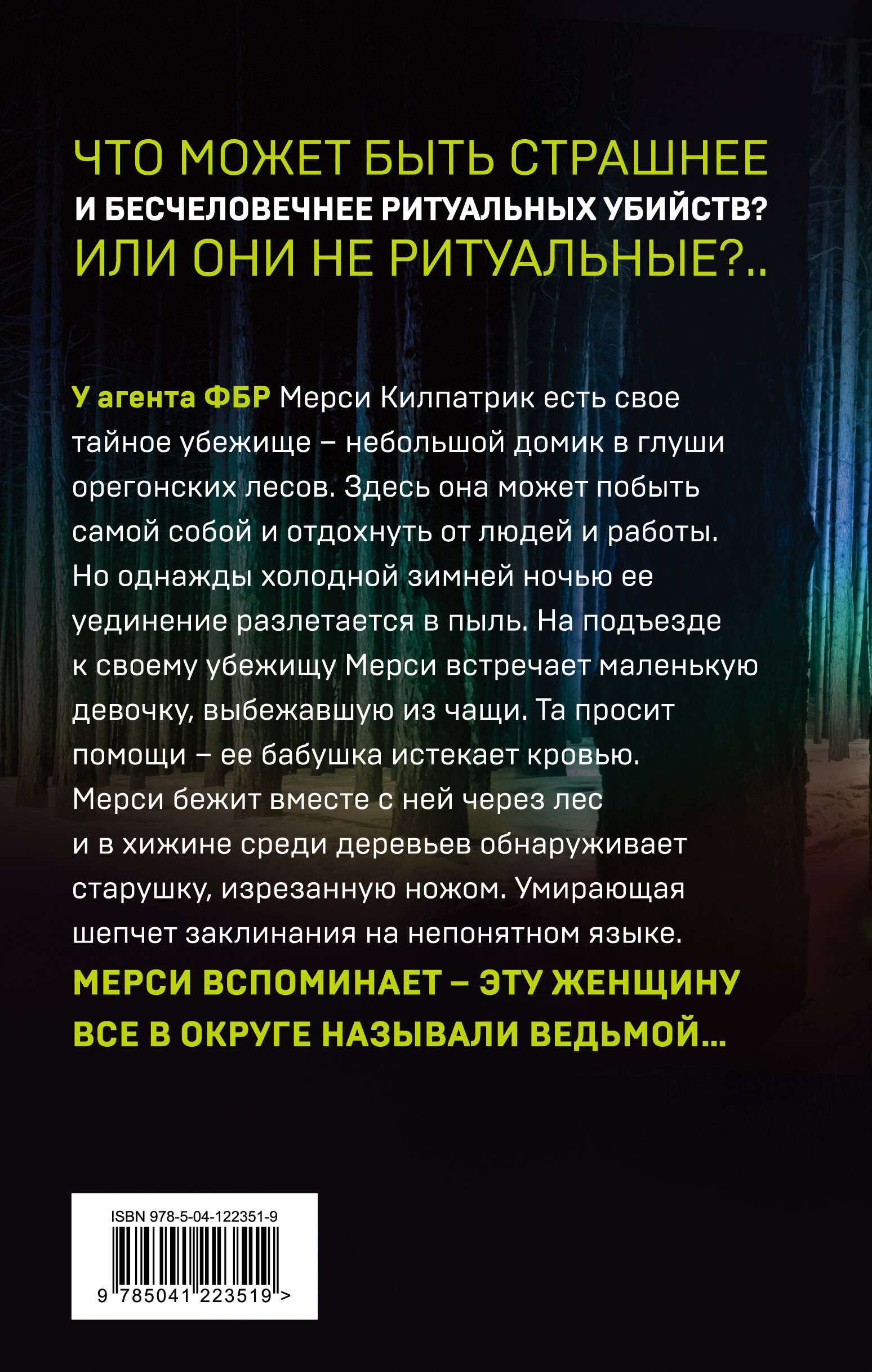 Бестселлер Wall Street Journal. В мире продано более 8 000 000 книг автора. Она видит цвет твоего страха. Она чует запах твоей боли. Она знает все твои тайны… Что может быть страшнее и бесчеловечнее ритуальных убийств? Или они не ритуальные?.. У агента ФБР Мерси Килпатрик есть свое тайное убежище - небольшой домик в глуши орегонских лесов. Здесь она может побыть собой и отдохнуть от людей и работы. Но однажды, холодной зимней ночью, ее уединение разлетается в пыль. Маленькая девочка выбежала из чащи прямо к убежищу Мерси. Малышка в отчаянии - ее бабушка истекает кровью. Вместе они бегут через лес, и там, в хижине среди деревьев, агент обнаруживает старушку, изрезанную ножом. Умирающая шепчет заклинания на непонятном языке. Да ведь это она - та, кого все в округе называют ведьмой… «В своей новой серии про Мерси Килпатрик Эллиот воссоздает невероятную атмосферу маленького города, где опасность буквально висит в воздухе, а герои скрывают множество секретов и демонстрируют извращенное чувство долга». - RT Book Reviews «Кендра Эллиот представляет нам быстро развивающийся напряженный триллер, который воспроизводит атмосферу маленького города и менталитет выживания, противопоставляя его миру технологий». - Publishers Weekly «Кендра Эллиот - мастер романтического саспенса. Она искусно переплетает рассказ об новых убийствах с описанием отношений Мерси и Трумэна. Изюминка этой книги - увлекательные подробности об образе жизни выживальщиков». - Адриан Лин, Amazon Book Review «Кендра Эллиот создает яркую историю семейной преданности, потерь и боли, надежды и веры семьи Килпатрик». - Romancing Life «От книг Кендры Эллиот трудно оторваться». - Book Him Danno! «Если вам нравится саспенс с постепенно развивающейся романтической линией, я смело рекомендую вам Кендру Эллиот». - Burns Through Her Bookshelf| Издательство | ООО "Издательство "Эксмо" |