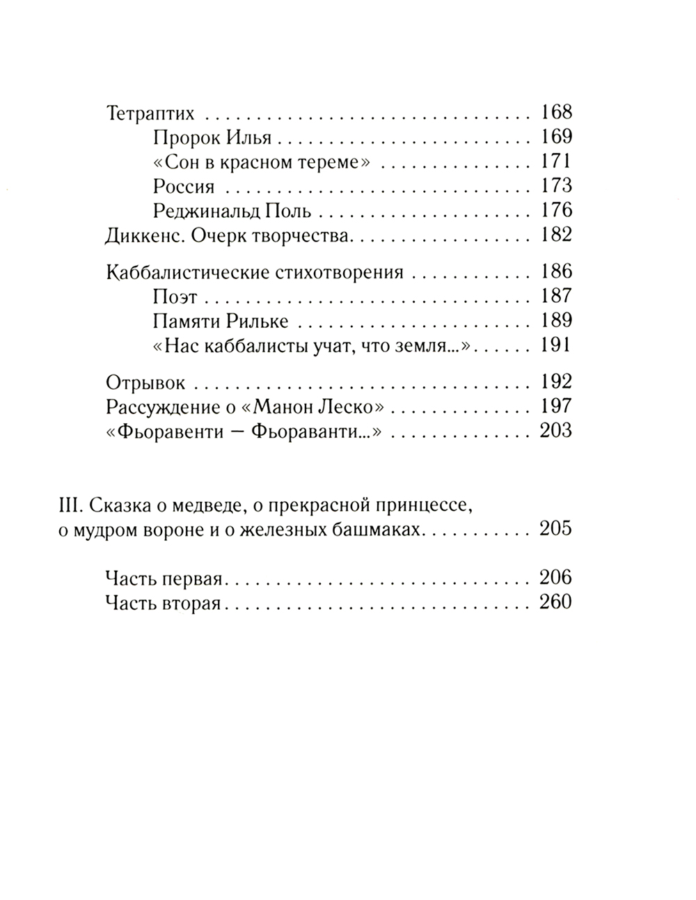 В книгу вошли помимо новых «московских повестей» ранее публиковавшиеся поэтические произведения, а также пьеса-притча «Сказка о Медведе, о прекрасной Принцессе, о мудром Вороне и о железных башмаках».| Издательство | Теревинф |