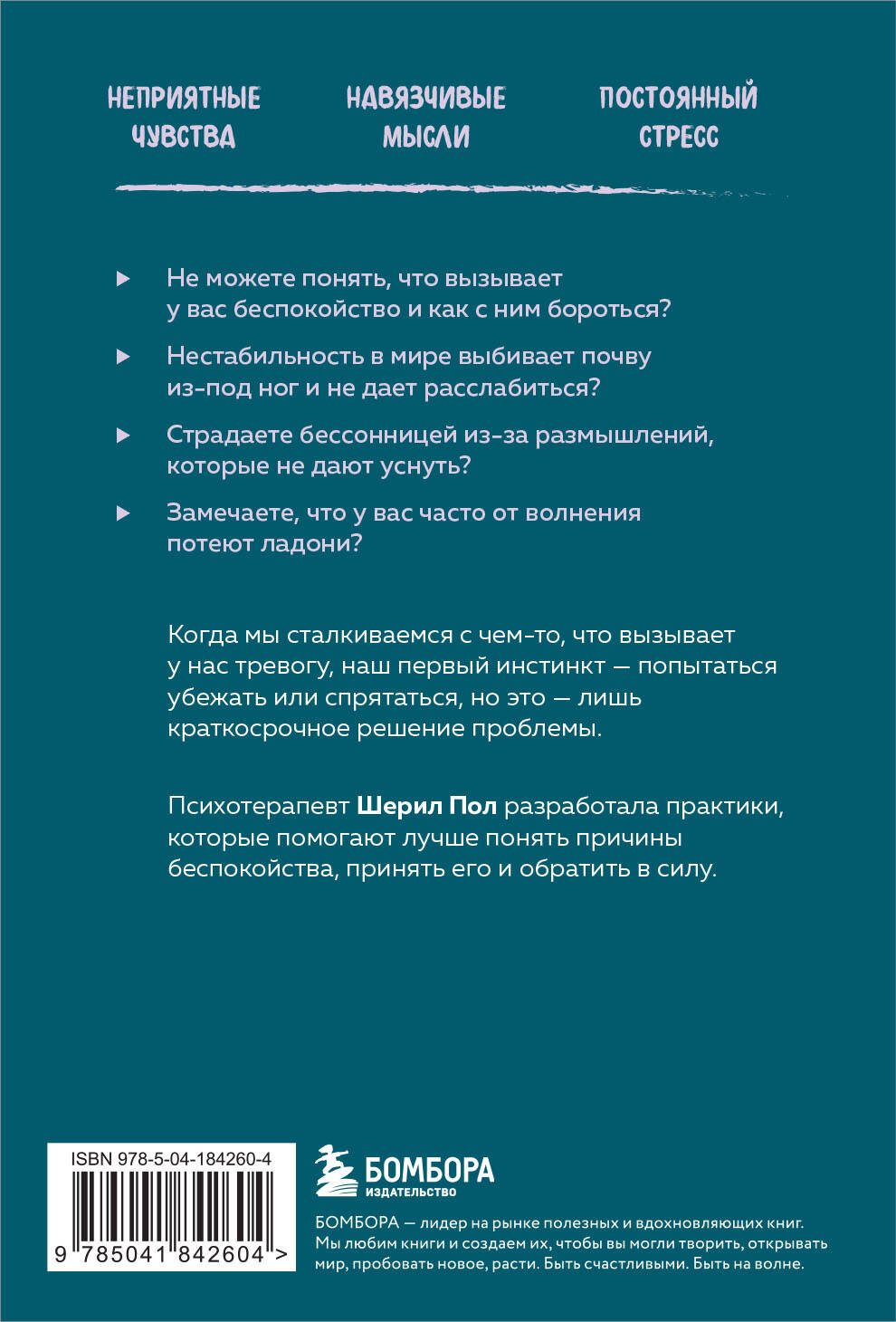 Все мы временами испытываем тревогу. Мы беспокоимся за свое здоровье, отношения, карьеру и близких. Нам все время кажется, что с нами что-то не так, что мы не оправдываем своих и чужих ожиданий. Психотерапевт Шерил Пол разработал практики, которые помогают лучше понять причины беспокойства, принять его и обратить в силу. ИЗ ЭТОЙ КНИГИ ВЫ УЗНАЕТЕ - как управлять навязчивыми мыслями; - как исследовать чувства одиночества, апатии, сожаления и стыда, не попадая под их влияние; - как воспитать в себе любящего внутреннего родителя; - как создать здоровые личные ритуалы для снятия тревоги; - как снизить беспокойство в отношениях с близким и детьми.| Издательство | ООО "Издательство "Эксмо" |