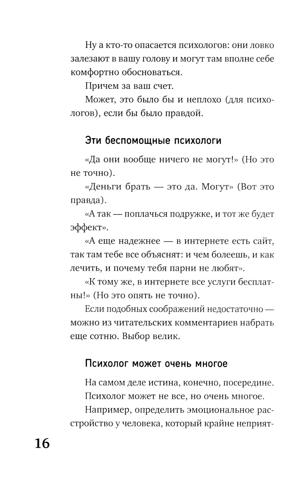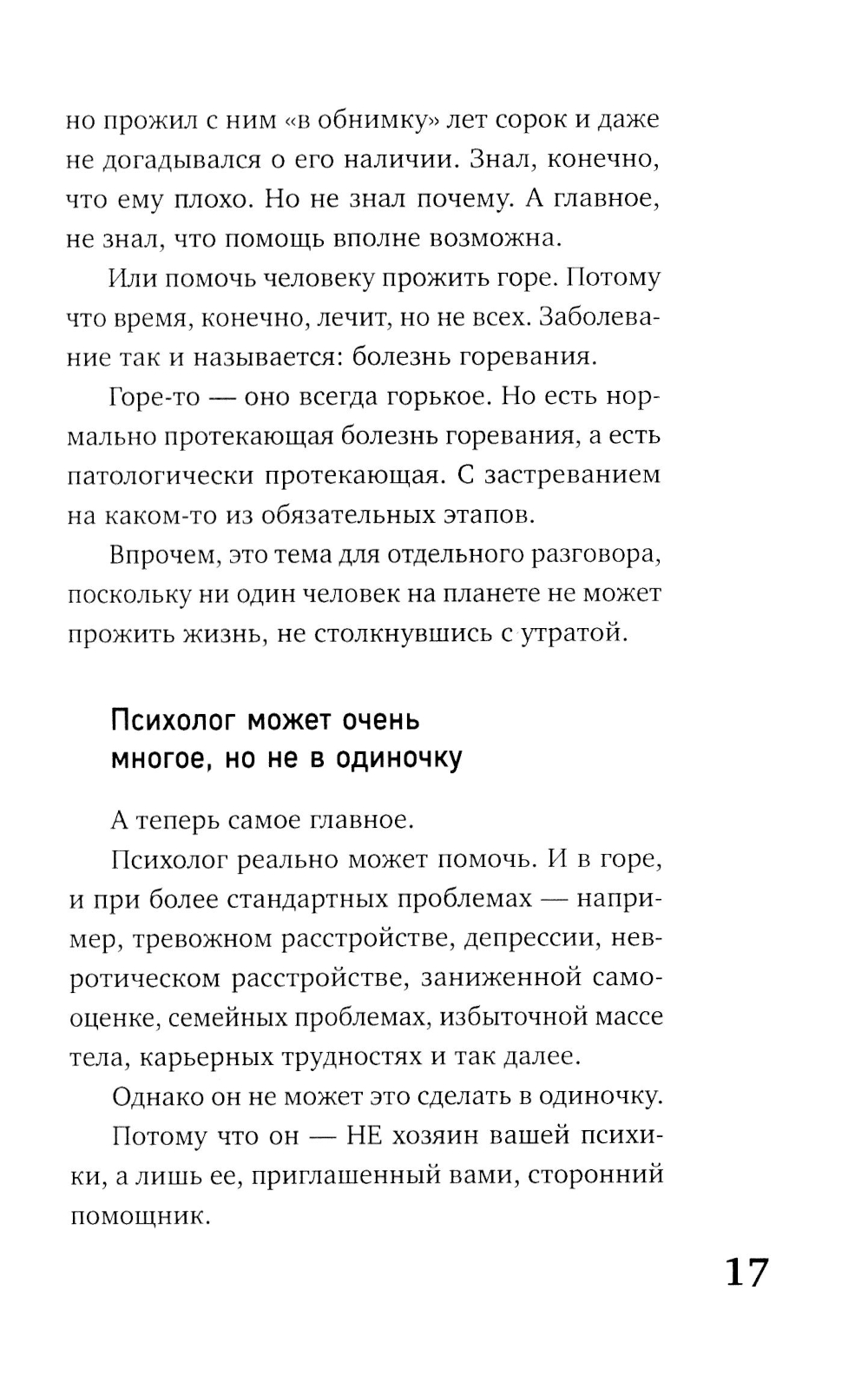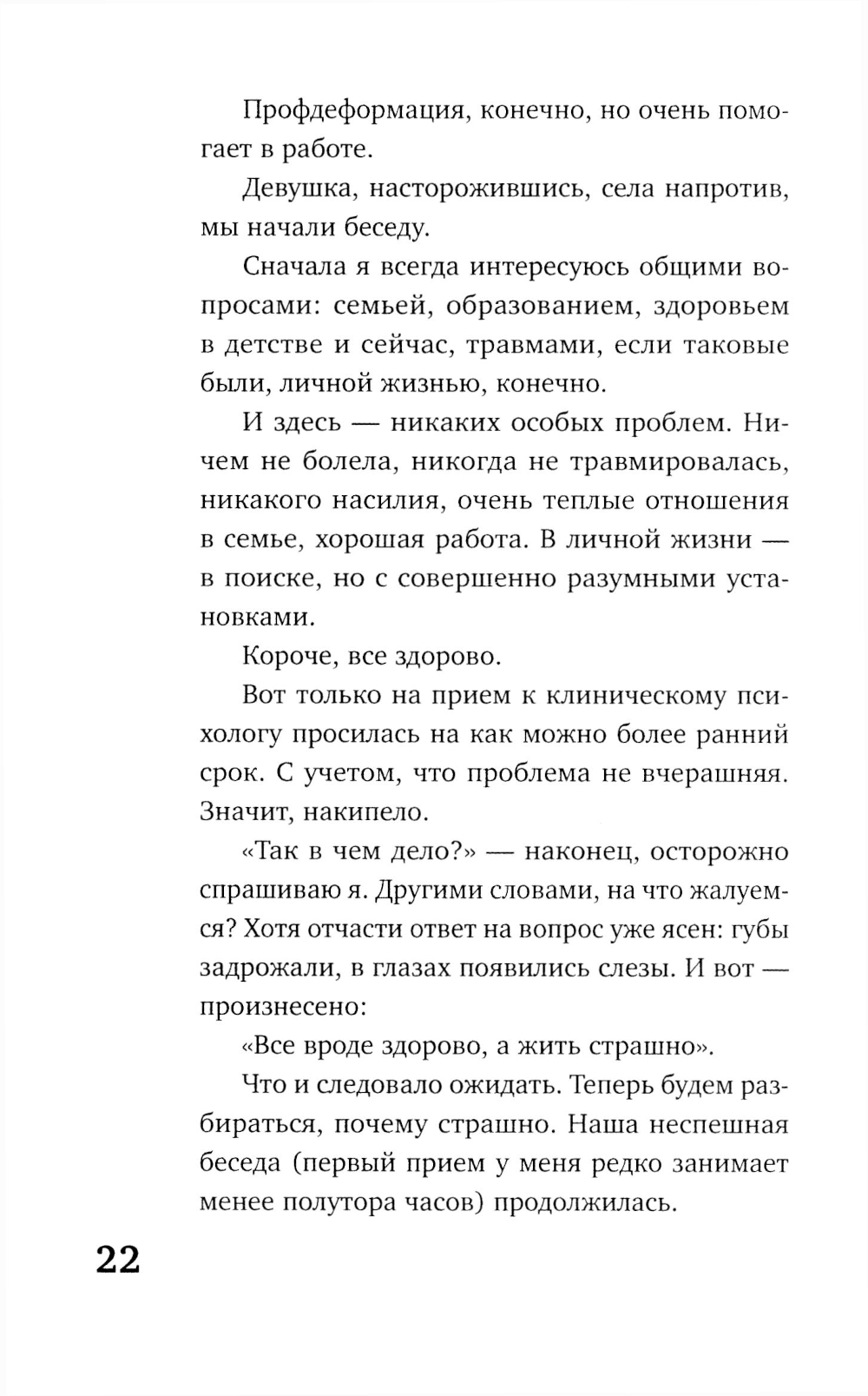 Как определить, что пора к психологу? Почему люди тре- вожатся? Когда тревога может быть полезна, а когда приносит только вред? Как помочь себе без применения медикаментов? Внутри вы найдете не только случаи из практики и исто- рии из кабинета, но и практическую программу безмедикамен- тозной помощи при тревожных и невротических расстройствах от практикующего кризисного психолога. А также полезные психологические тесты для определения необходимости обращения за помощью к специалисту. Книга будет интересна как для практикующих психологов, так и для широкого круга читателей.| Издательство | Яуза-каталог |