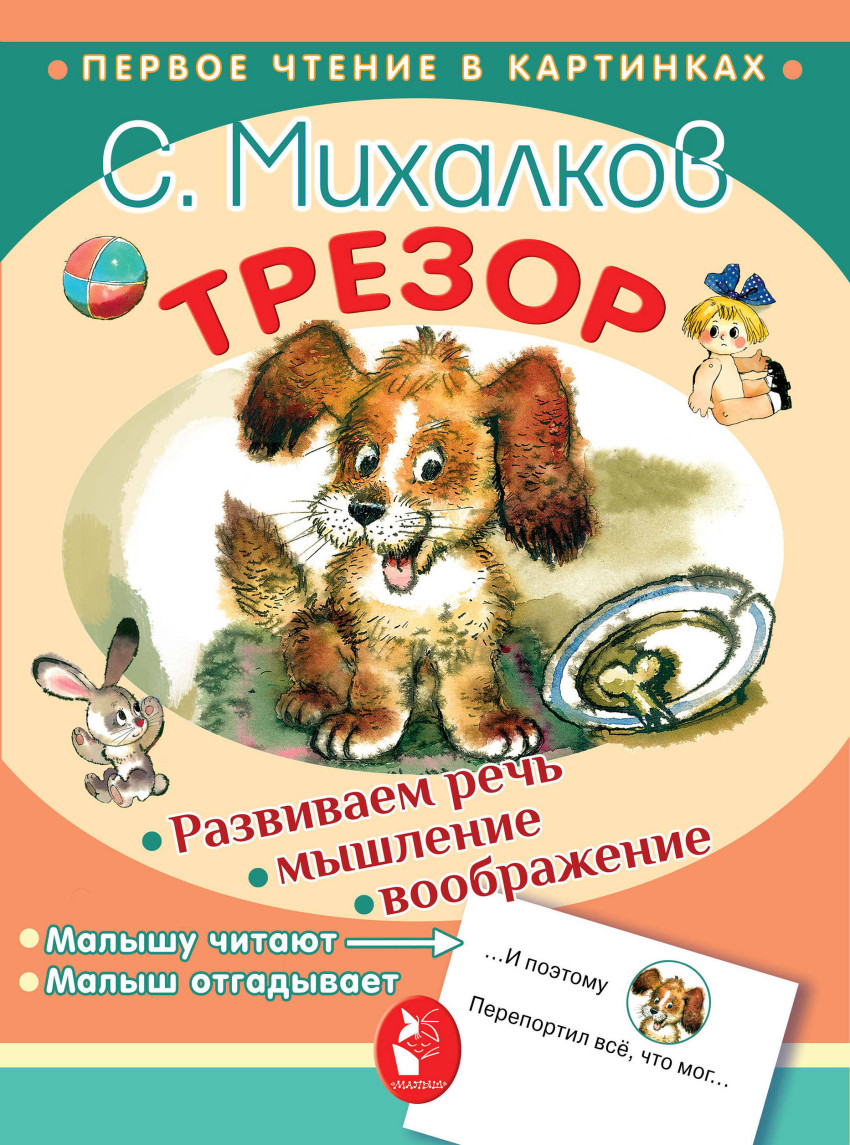 Прочитайте малышу знаменитое стихотворение С.В. Михалкова «Трезор» и попросите его назвать вслух те слова, которые заменены картинками. Детки с удовольствием послушают про непоседливого щенка, рассмотрят большие картинки, а заодно увеличат свой словарный запас, смогут научиться правильно излагать свои мысли и потренируют своё воображение!