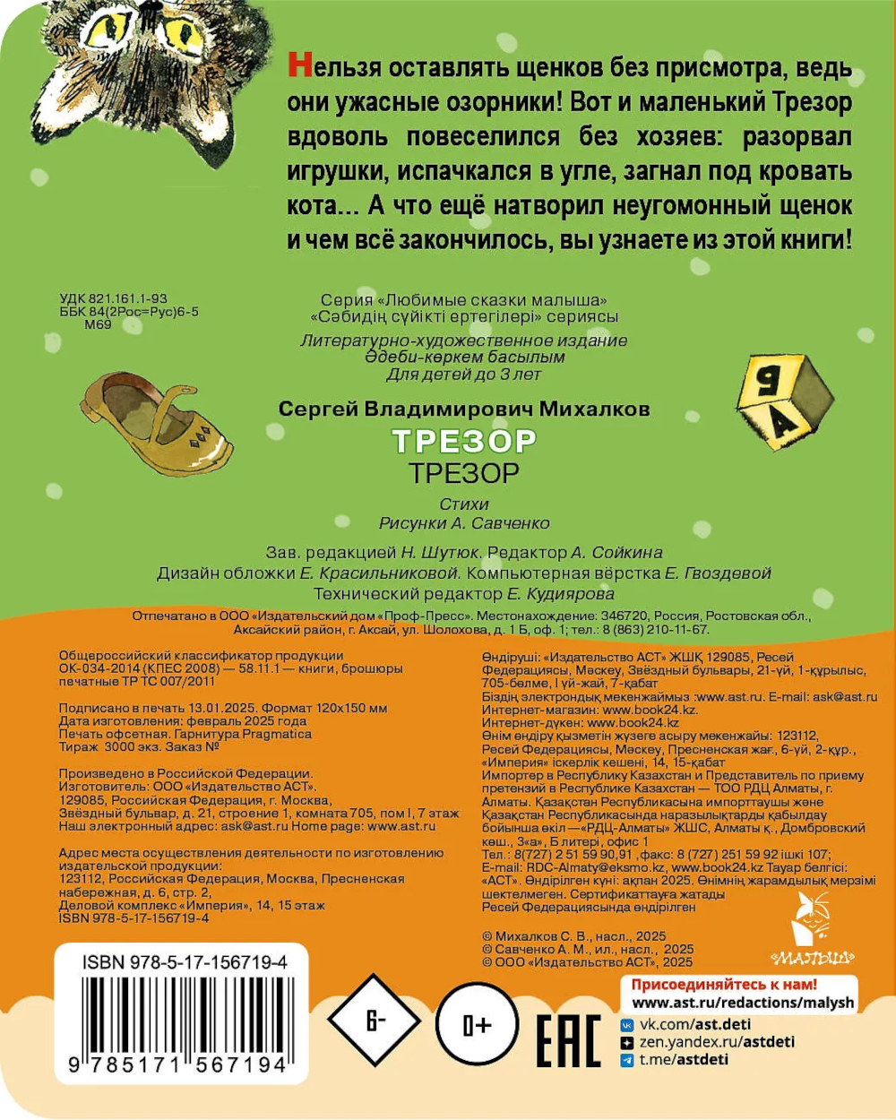 Нельзя оставлять щенков без присмотра, ведь они ужасные озорники! Вот и маленький Трезор вдоволь повеселился без хозяев: разорвал игрушки, испачкался в угле, загнал под кровать кота… А что ещё натворил неугомонный щенок и чем всё закончилось, вы узнаете из этой книги!| Издательство | АСТ |