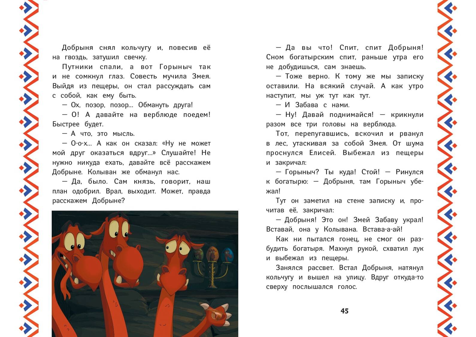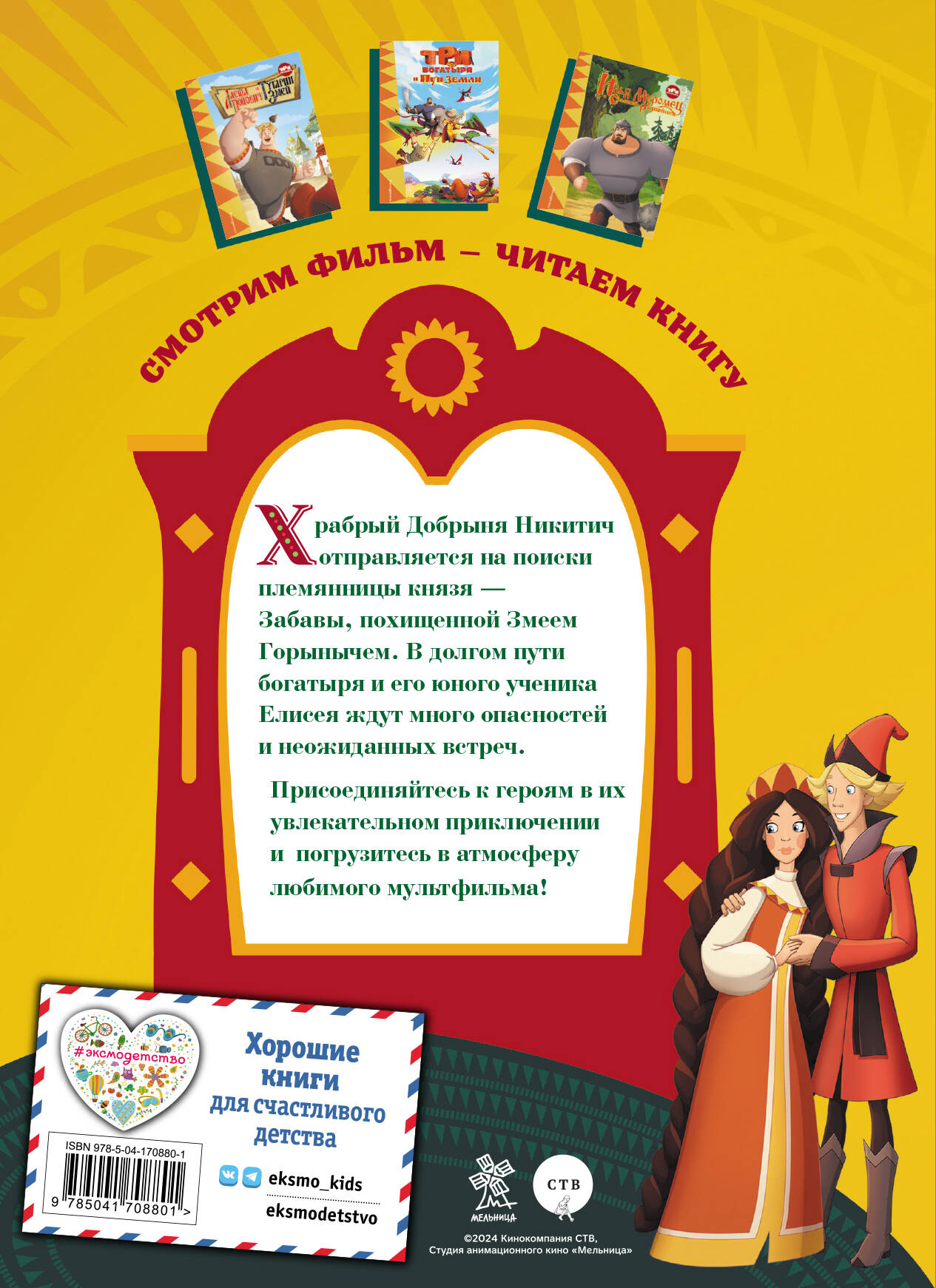 Эта книга придётся по душе всем любителям популярного мультфильма «Добрыня Никитич и Змей Горыныч», созданного анимационной студией «Мельница». История, так полюбившаяся детям и взрослым благодаря захватывающему сюжету и юмору, вновь оживёт на этих ярких страницах! Вас ждут удивительные приключения Добрыни Никитича, которому предстоит сразиться со старым другом - Змеем Горынычем, похитившим племянницу князя Забаву. В долгом пути богатыря и его юного ученика Елисея ждут много опасностей и неожиданных встреч. Яркие красивые иллюстрации передают полюбившуюся атмосферу оригинального мультфильма, а лёгкий, динамичный текст делает книгу ещё увлекательней.| Издательство | ООО "Издательство "Эксмо" |
