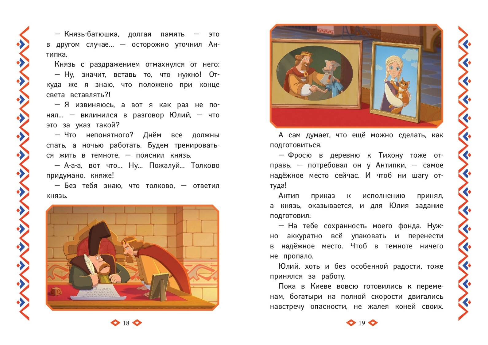 Новая книга по суперпопулярной франшизе «Три богатыря»! Внутри - история по новому фильму «Свет клином», иллюстрированная цветными кадрами. Компактный формат, задорный и легкий стиль письма и яркое оформление делают эту книгу идеальным подарком для любого фаната франшизы 6-8 лет! Не раз и не два служба земле родной разлучала богатырей с любимыми женами. Но теперь во всех трех семьях ожидается пополнение, и твердо намерены верные мужья ни на шаг не отходить от жен, пока не разрешатся те благополучно от бремени. Судьба, однако, иначе решила. Слухи пошли по Киеву нехорошие: мол, затмит весь белый свет туча огромная, погрузит Русь-матушку в темноту на долгие годы. Оставив все дела семейные, бросаются богатыри навстречу опасности. А хитрый купец Колыван, прознав про их отсутствие, уже строит планы по захвату Киева…| Издательство | ООО "Издательство "Эксмо" |