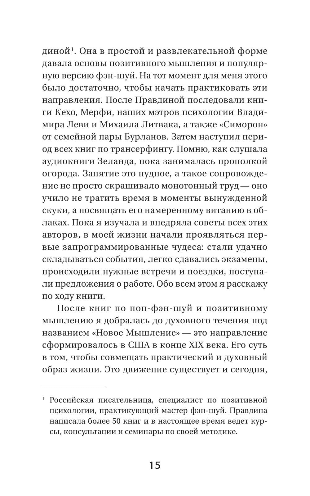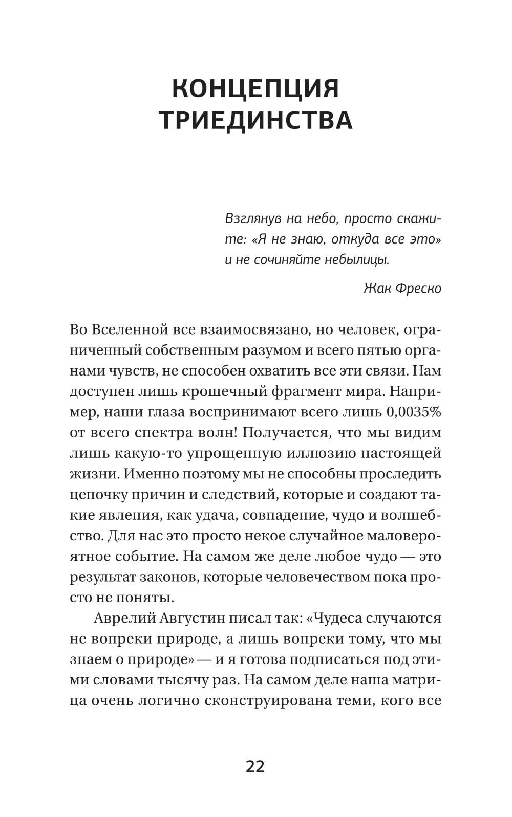 Хотите, чтобы Вселенная чаще отвечала вам «да»? Автор книги - Анастасия Андреева - более двадцати лет изучает восточные и западные философские и эзотерические системы, соединяя их с современными подходами психологии и научными данными о работе подсознания. В этой книге вы найдете проверенные временем техники исполнения желаний и освоите работу с тремя источниками силы: врожденными талантами, бесконечными богатствами и щедростью Вселенной и творческой способностью своего сознания. Вас ждет не только теория, не просто объяснение того, как устроено наше подсознание и на каких законах строится взаимодействие со Вселенной. Вы сможете освоить множество различных техник - научитесь обращаться к силе рода, составлять карту желаний, правильно формулировать намерения и наполнять их энергией, а также узнаете, какие техники используют некоторые миллиардеры из Кремниевой долины для достижения самых дерзких целей. Особенность этой книги в том, что она дает вам возможность выбрать именно ту практику, которая отзывается в душе, а значит прийти к исполнению своего желания намного быстрее.| Издательство | АСТ |