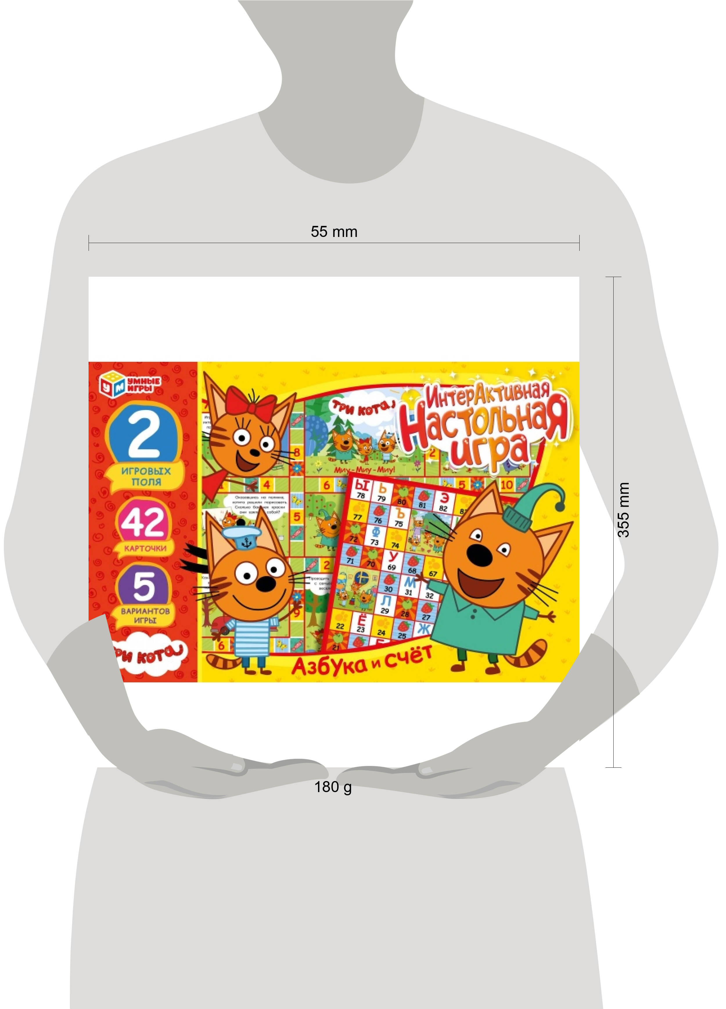 Аннотация: Три кота. Азбука и счёт. ИнтерАктивная настольная игра. 350x230x55 мм. Умные игры в кор.20шт
