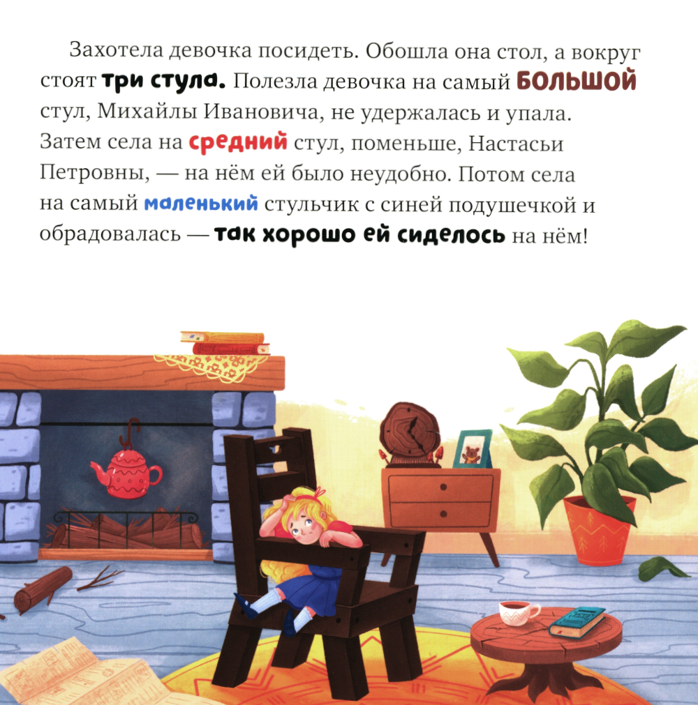 Как-то раз одна девочка без спросу ушла из дома в лес да заблудилась. Вскоре она набрела на домик трёх медведей, вошла без приглашения и напроказничала. Сможет ли она всё исправить? Забавная игра «найди и покажи» в конце книги!| Издательство | Клевер-Медиа-Групп |