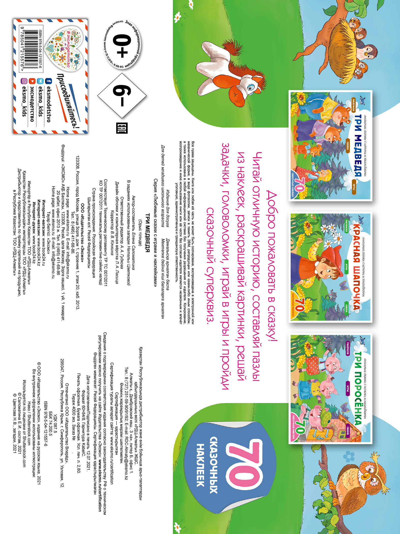 Аннотация: Три медведя (+70 наклеек). Сказки, раскраски и игры