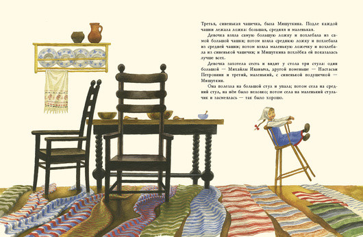 На замечательных сказках Льва Николаевича Толстого выросло не одно поколение детей. Перед вами история о маленькой девочке, заблудившейся в лесу и попавшей в дом к трём медведям, где она успела не только попробовать похлёбку и выспаться на чужой кроватке, но и сломать маленький стульчик Мишутки.