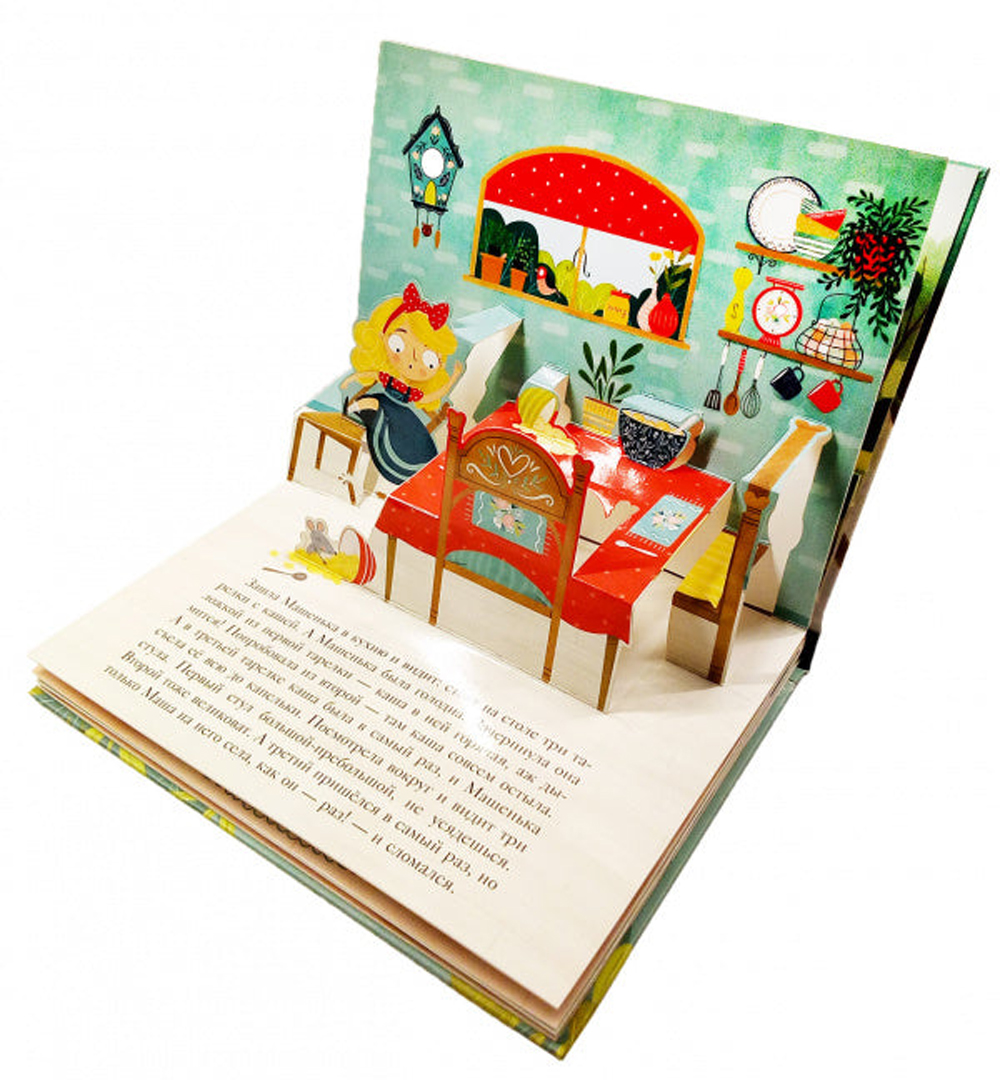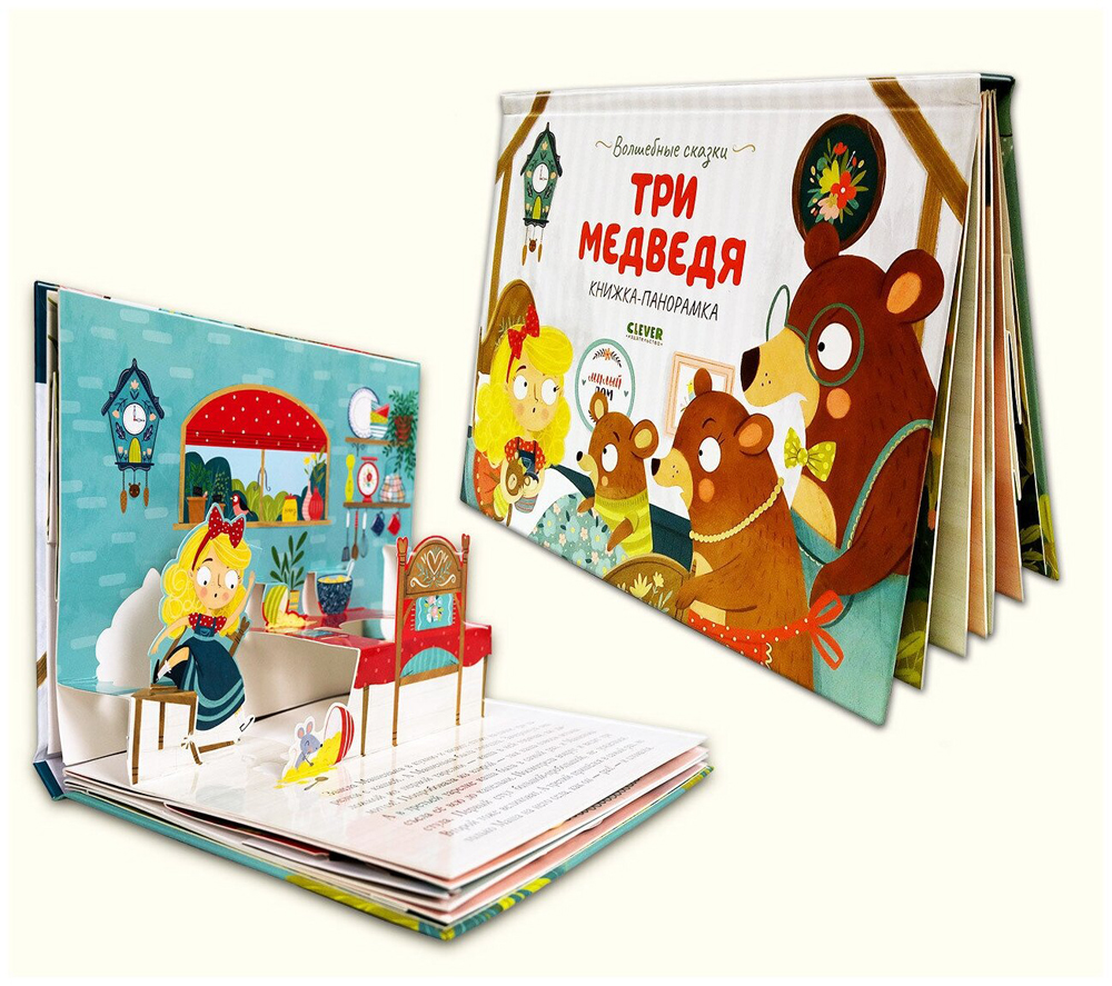 Книжка-панорамка большого формата «Три медведя» откроет малышу волшебный мир сказок. Знакомые персонажи известной сказки будут буквально оживать на каждой странице. Милые иллюстрации окунут вас в уютную атмосферу аккуратного домика трех медведей, в котором есть книжки, ходики, сундук со шляпками, на окнах - занавески, а на подоконниках - комнатные цветы и зелень в горшочках. Такая книжка-панорамка станет прекрасным подарком малышам от 1 до 3 лет. Твердый переплет, прочный белый картон, блестящая фольга и глянцевый лак на обложке книги «Три медведя» произведут впечатление и на родителей.| Издательство | Клевер-Медиа-Групп |