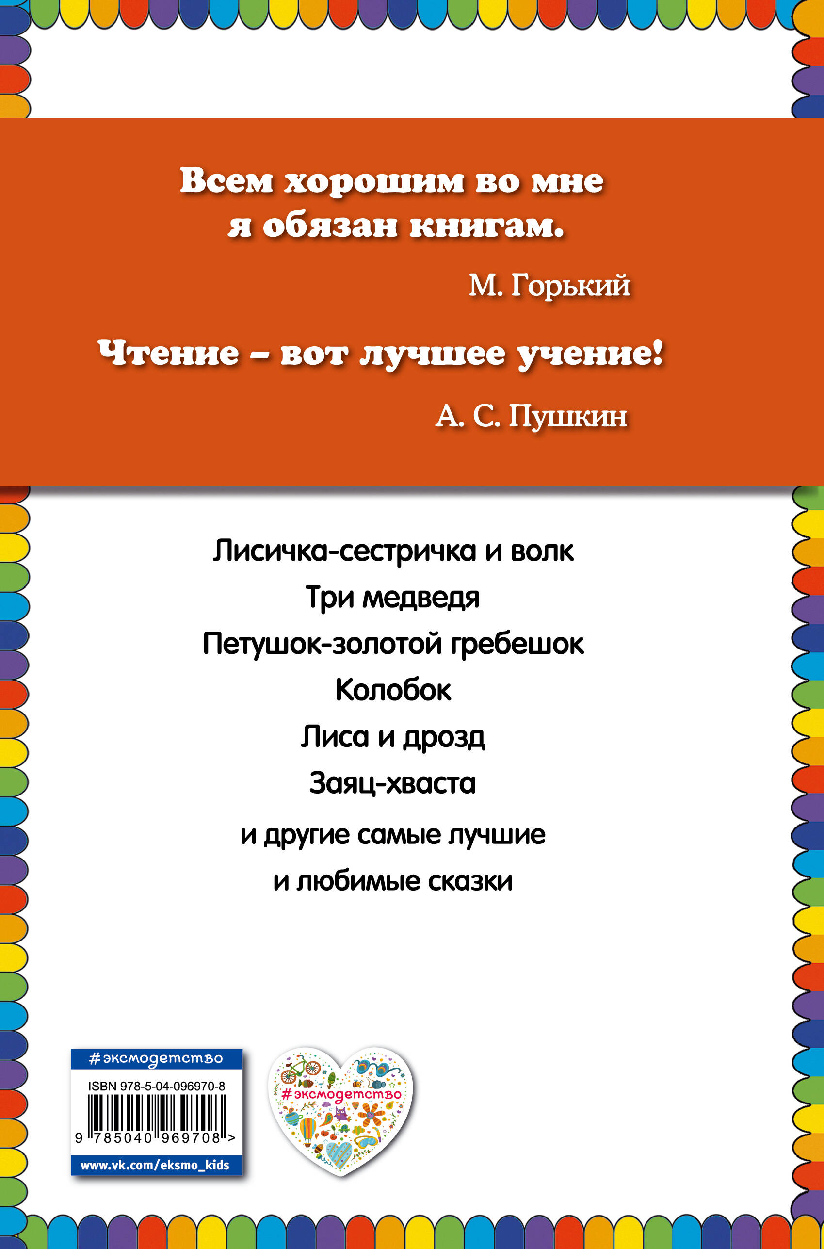Любимые русские сказки "Лисичка сестричка и волк", "Колобок", "Три медведя", "Терем - теремок", "Петушок - золотой гребешок" и другие. Короткие сказки легко прочесть детям. Красочные и стильные рисунки Марины Литвиновой.| Издательство | Эксмо |