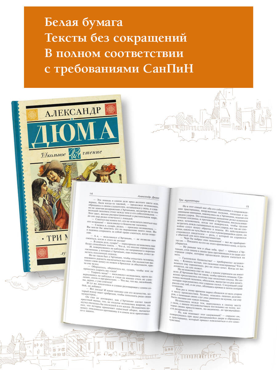 Александр Дюма (1802 - 1870) - классик не только французской, но и мировой литературы. Работал во многих жанрах: писал пьесы, романы, статьи, книги о путешествиях, однако по праву считается создателем классического историко-приключенческого романа. Роман «Три мушкетера» рассказывает о приключениях молодого небогатого дворянина д'Артаньяна и трёх его друзей-мушкетёров Атоса, Портоса и Арамиса.| Издательство | ИЗДАТЕЛЬСТВО "АСТ" |