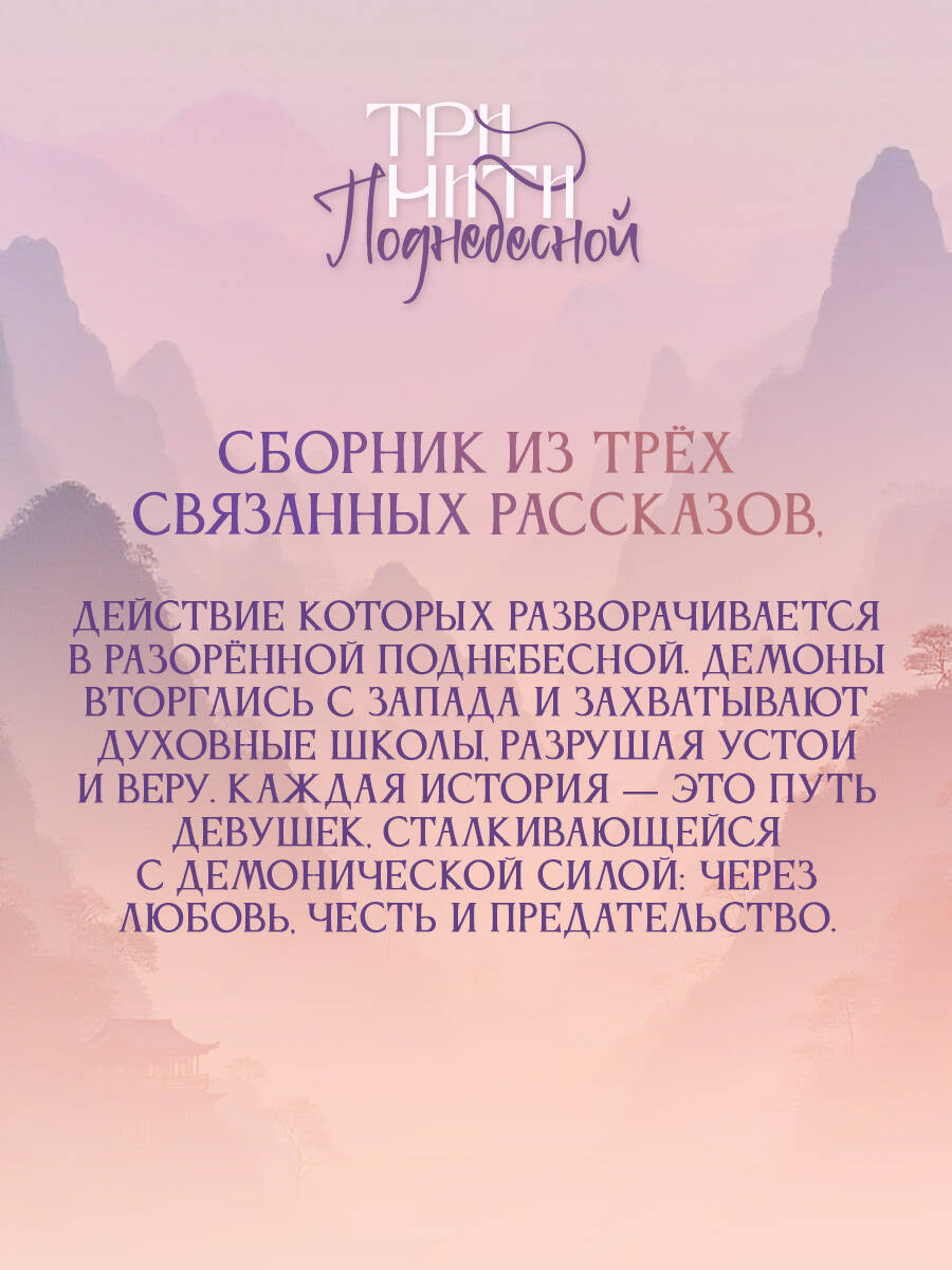 Три девушки. Три судьбы. Один мир, расколотый между демонами и людьми. Поднебесная сдаётся под натиском демонических сил, которые захватывают духовные школы, разрушая устои и веру. И среди этого хаоса принцесса, девушка-генерал и целительница противостоят демонам в собственных битвах. Нежность, которая может стать щитом. Честь, за которую можно погибнуть. Обман, который становится единственным оружием. Это три лика одной судьбы - судьбы, сплетённой из боли, желания и силы. Смогут ли они победить или их борьба всего лишь туманная дымка, которая рассеется с восходом солнца?| Издательство | Издательство "АСТ" |