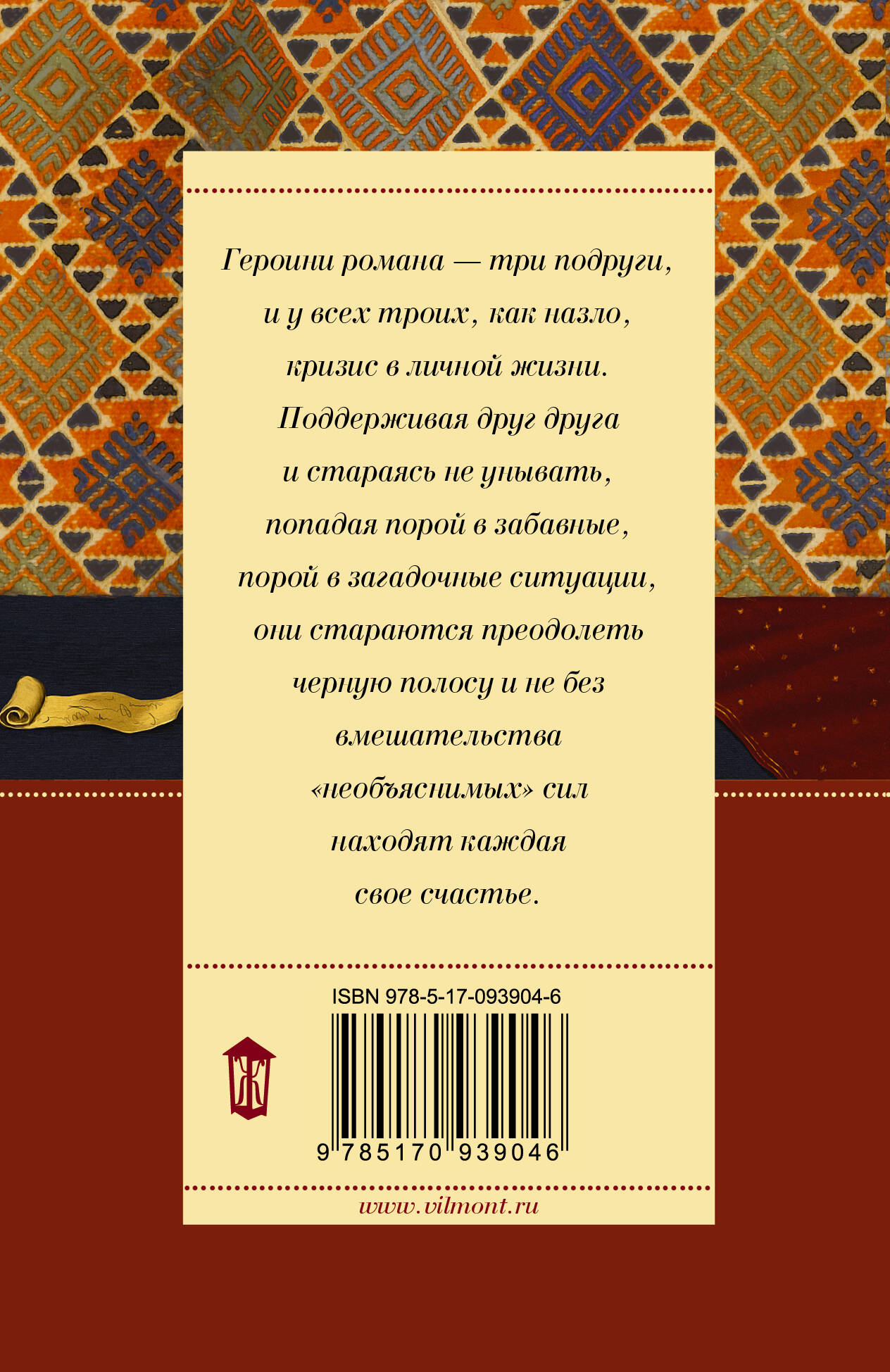 Героини романа - три подруги, и у всех троих, как назло, кризис в личной жизни. Поддерживая друг друга и стараясь не унывать, попадая порой в забавные, порой в загадочные ситуации, они стараются преодолеть черную полосу, и не без вмешательства "необъяснимых" сил находят каждая свое счастье.| Издательство | Издательство "АСТ" |