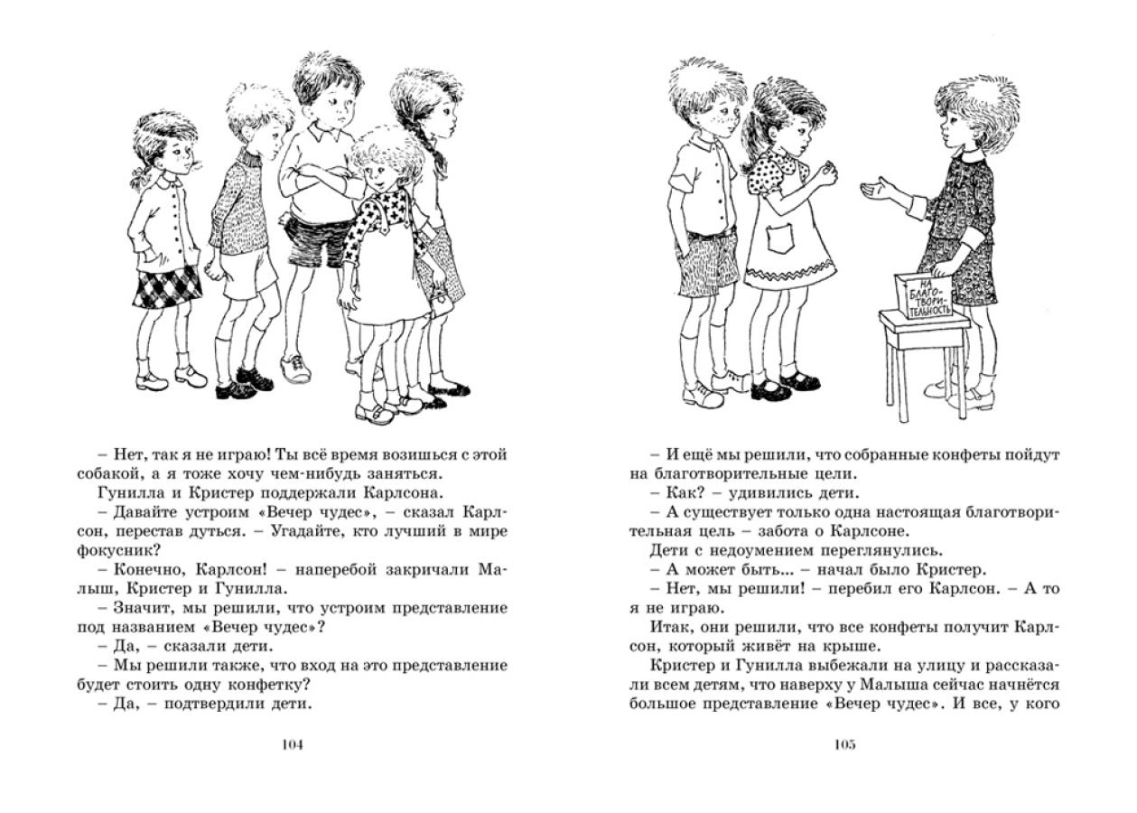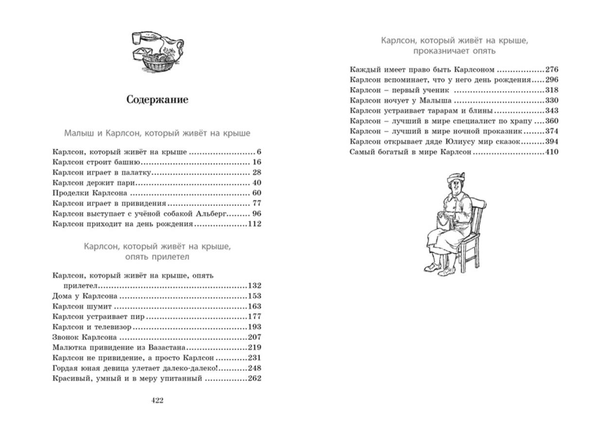 Книга замечательной шведской писательницы Астрид Линдгрен, лауреата многих престижных премий, в том числе золотой медали Андерсена, о Малыше и Карлсоне, который живёт на крыше. Этого толстенького забавного человечка с моторчиком и пропеллером на спине знают и любят дети всего мира. У него непоседливый нрав, и он полон выдумок и фантазий. Он может превратить твой день в тарарам, но с ним никогда не бывает скучно, потому что его девиз: «Надо, чтобы было весело и забавно, а то я не играю!»| Издательство | Азбука |