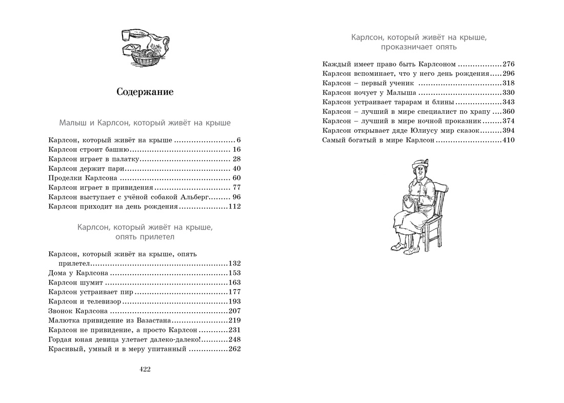Книга замечательной шведской писательницы Астрид Линдгрен, лауреата многих престижных премий, в том числе золотой медали Андерсена, о Малыше и Карлсоне, который живёт на крыше. Этого толстенького забавного человечка с моторчиком и пропеллером на спине знают и любят дети всего мира. У него непоседливый нрав, и он полон выдумок и фантазий. Он может превратить твой день в тарарам, но с ним никогда не бывает скучно, потому что его девиз: «Надо, чтобы было весело и забавно, а то я не играю!»| Издательство | Махаон |
