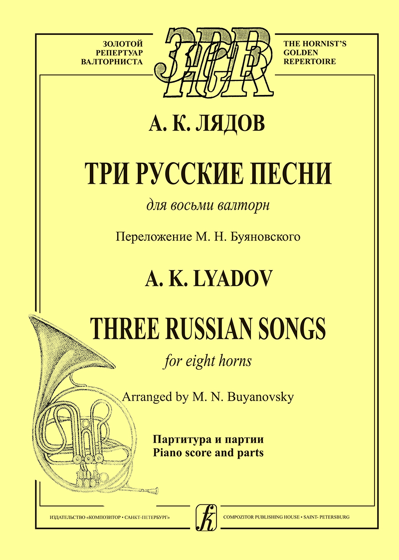 Три русские песни для восьми валторн. Перелож. В. Буяновского. Партитура и партии