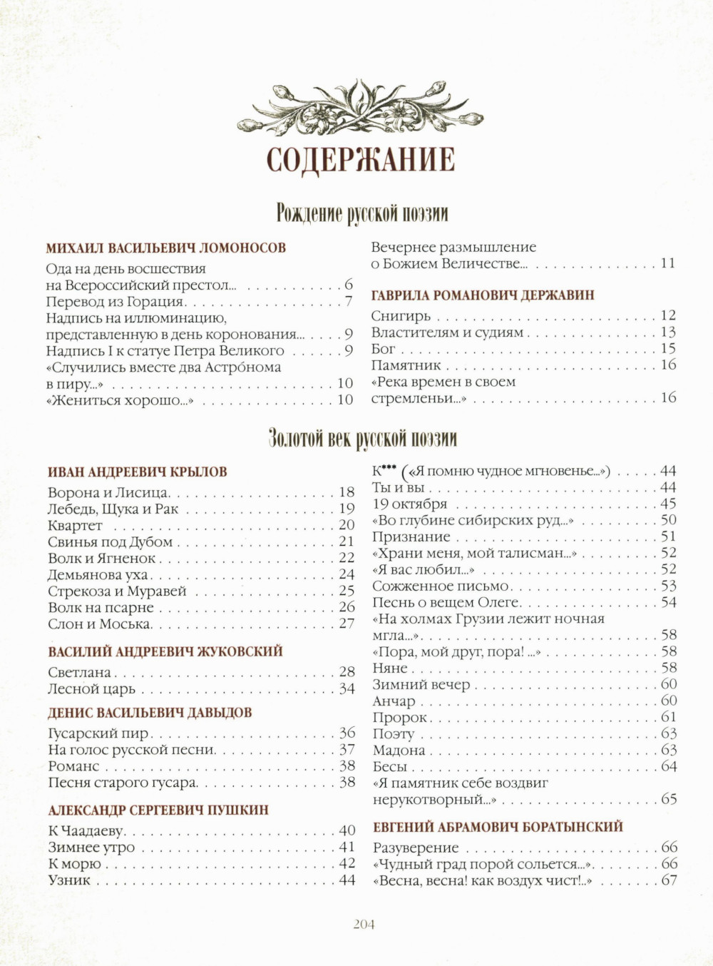 В этой подарочной антологии представлены шедевры трех эпох русской поэзии: - Рождение русской поэзии - XVIII век с классическими стихотворениями Ломоносова и Державина. - Золотой век, осененный гением Пушкина и Лермонтова, Некрасова и Тютчева, украшенный легким слогом Жуковского, вдохновенными строками Фета... - Серебряный век - культурный ренессанс XX столетия с великими стихами Блока и Цветаевой, Есенина и Маяковского... В нашей книге собраны все любимые стихи, знакомые нам со школьной скамьи, которые сопровождают нас всю жизнь, даря неповторимые эмоции. Это тот золотой запас, на котором зиждется вся русская культура. Книга иллюстрирована прекрасными произведениями русской и зарубежной живописи, а также портретами великих русских поэтов.| Издательство | Просвещение-Союз |