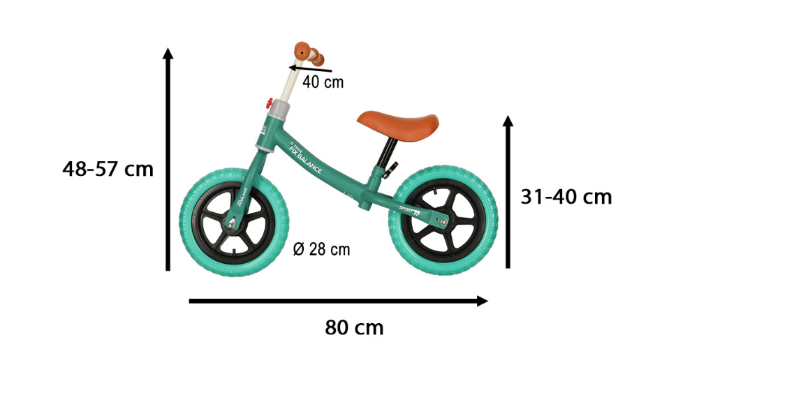 Регулируемая высота руля (48-57 см) и седла (31-40 см) под рост ребёнка.