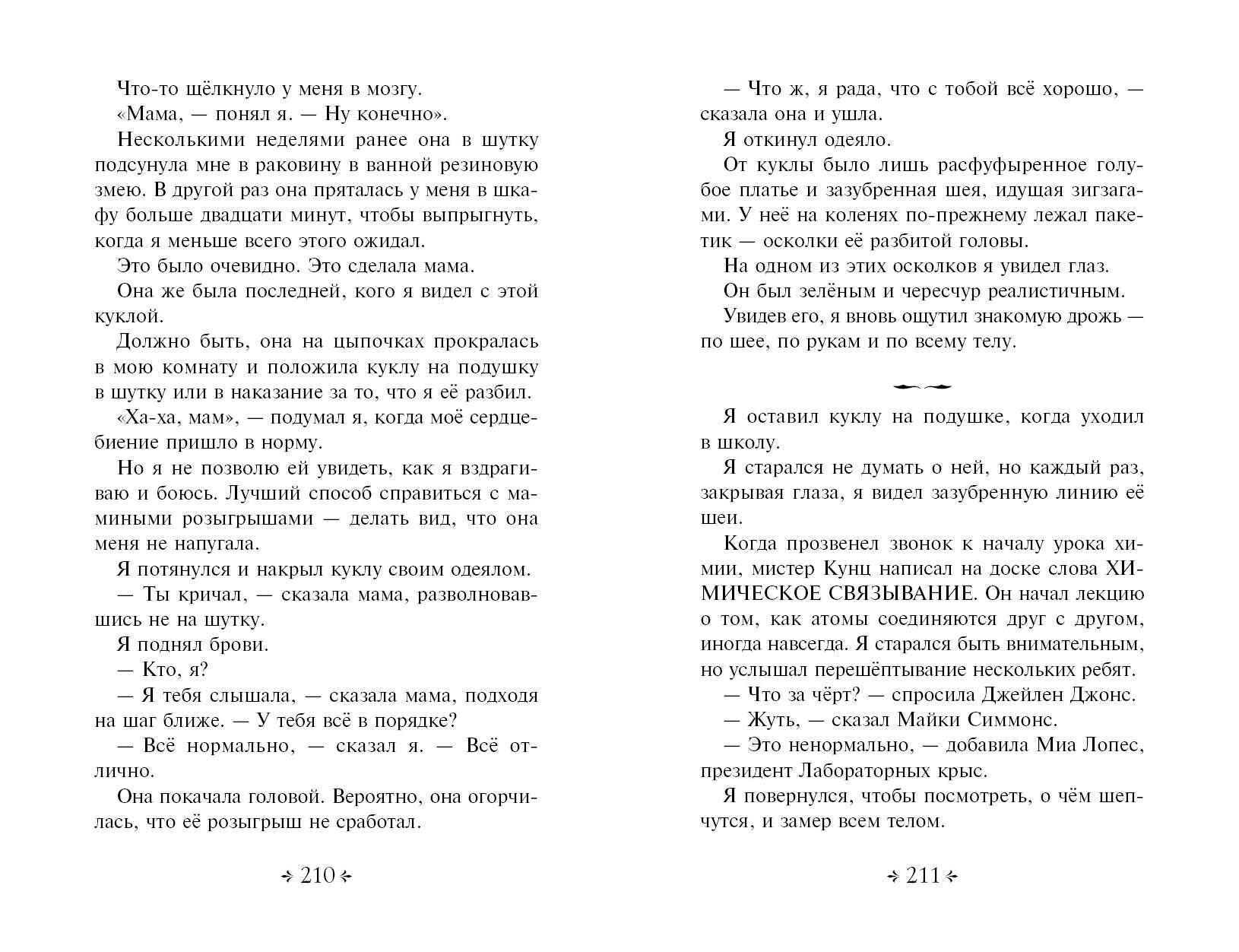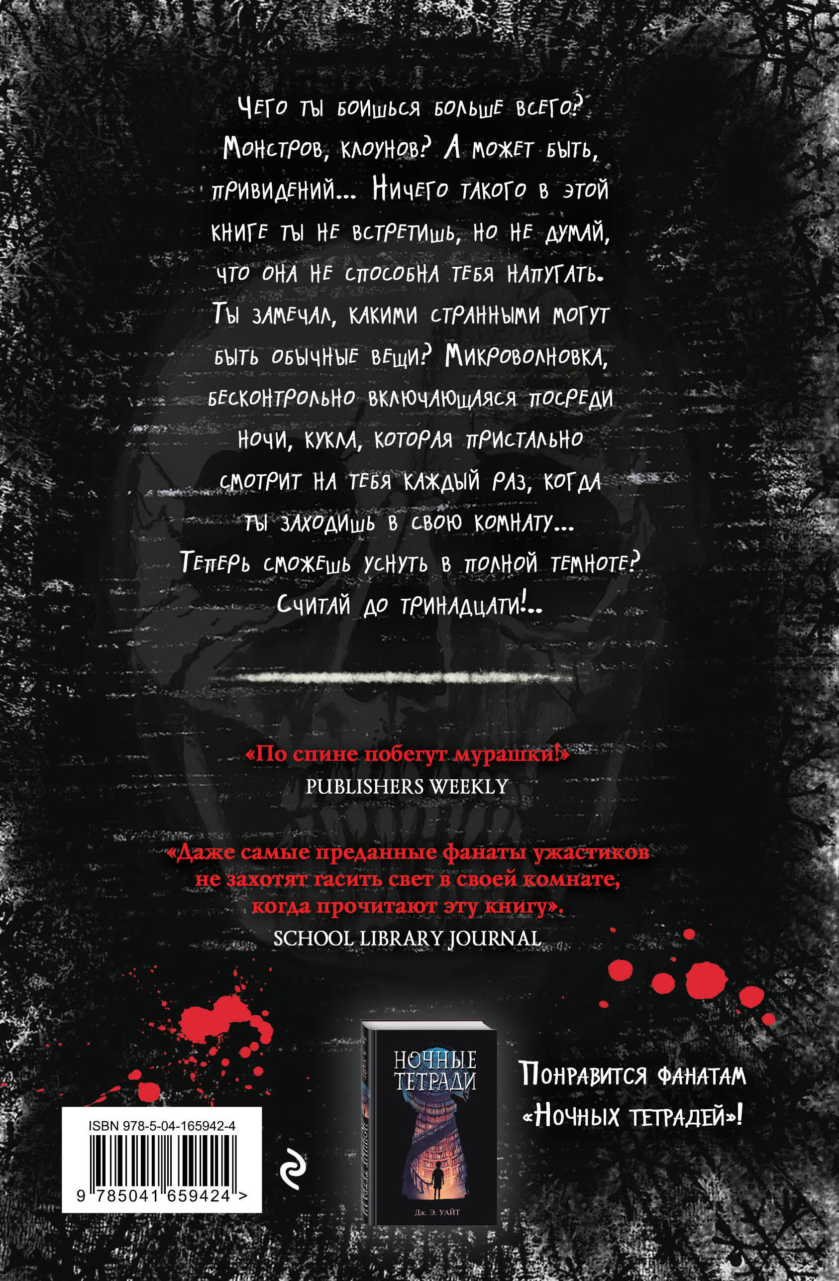 Все по-настоящему жуткие вещи спрятаны прямо у вас под носом и могут ожить прямо сейчас! Вовсе не обязательно ждать пятницы, 13, или Хэллоуина… Чего ты боишься больше всего? Монстров, клоунов? А может быть, привидений… Ничего такого в этой книге ты не встретишь, но не думай, что она не способна тебя напугать. Ты замечал, какими странными могут обычные вещи? Микроволновка, бесконтрольно включающаяся посреди ночи, кукла, которая пристально смотрит на тебя каждый раз, когда ты заходишь в свою комнату… Теперь сможешь уснуть в полной темноте? Считай до тринадцати!.. «Эти истории пугают, потому что они правдивы!» - Amazon.com «Первоклассная страшилка для детей! Эта книга должна быть на полке у каждого подростка, обожающего страшные истории». - School Library Journal