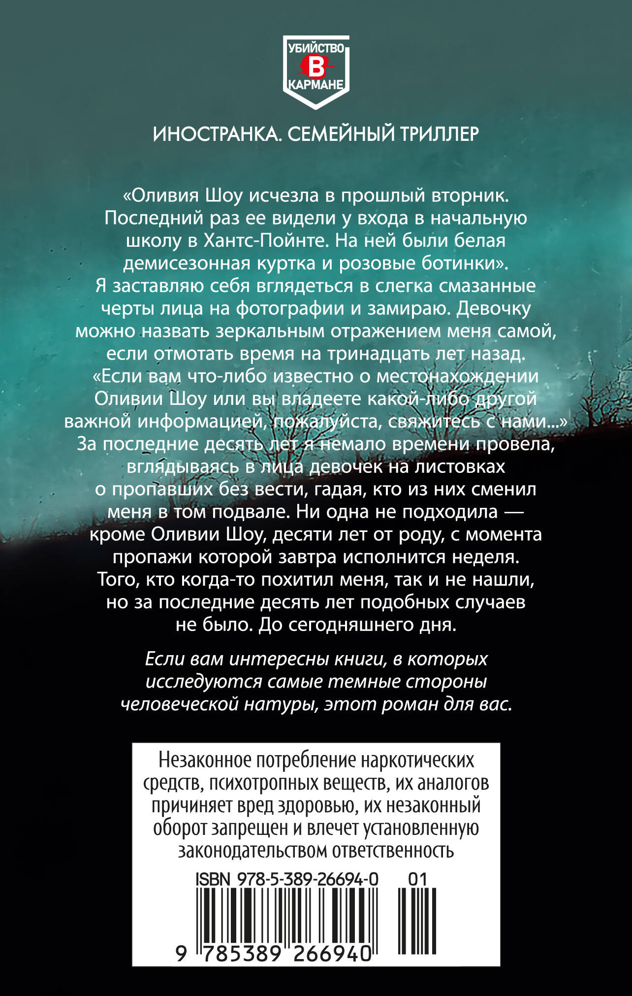 Впервые на русском языке дебютный и самый известный саспенс мастера психологического триллера Нины Лорен. Его шокирующий прихотливый сюжет (строго 18+), глубокая эмоциональность, напряженная, мрачная атмосфера и нетривиальная развязка придутся по вкусу любителям книг «Я слежу за тобой» Терезы Дрисколл, «Все пропавшие девушки» Миранды Меган и фильма «Самая везучая девушка». Повествование от первого лица позволит читателю ощутить себя на месте главной героини и в полной мере разделить ее переживания и чувства. Насилие калечит тело и душу, ломает судьбу. Тринадцать лет назад маньяк похитил десятилетнюю Эллу Сантос, через три года отпустил. Беременную. И никак не засветился. Теперь Ева носит имя Лейн Морено. Под длинными рукавами и голенищами ботинок скрывает шрамы на запястьях и лодыжках. Работает, где придется. Живет, словно на вокзале. Посещает психолога, получает антидепрессанты, но мысли о самоубийстве и воспоминания отгоняет наркотиками и алкоголем. Читает о маньяках и сгинувших девочках. И никому на свете не доверяет. Но вот однажды с листовки на Лейн смотрит удивительно знакомое лицо: пропала десятилетняя Оливия, совсем такая, как она сама в детстве. Дело поручено детективу Шону Ортису. Его лицо - первое, которое увидела Лейн десять лет назад после долгих месяцев заключения. Только достаточно ли это веская причина, чтобы она стала сотрудничать со следствием?.. «Тринадцать лет тишины» - это шанс безопасно: - погрузиться в паранойю и отвращение к себе, наполняющее дни жертвы насилия; - выяснить, что доверие - абсолютно необходимое для человека чувство; - принять участие в безнадежном расследовании; - познакомиться с неплохими, но всегда готовыми предать людьми; - заглянуть в бездну черной души маньяка, поражаясь изворотливости его извращенного ума - рискнуть жизнью ради спасения похищенной девочки и выяснить, что не все то, чем кажется. Эффектно оформленная книга уменьшенного формата отлично поместится в даже в небольшой сумочке. Изложенная в ней история не оставит равнодушными даже многолетних поклонников жанра.| Издательство | Издательство АЗБУКА ООО |