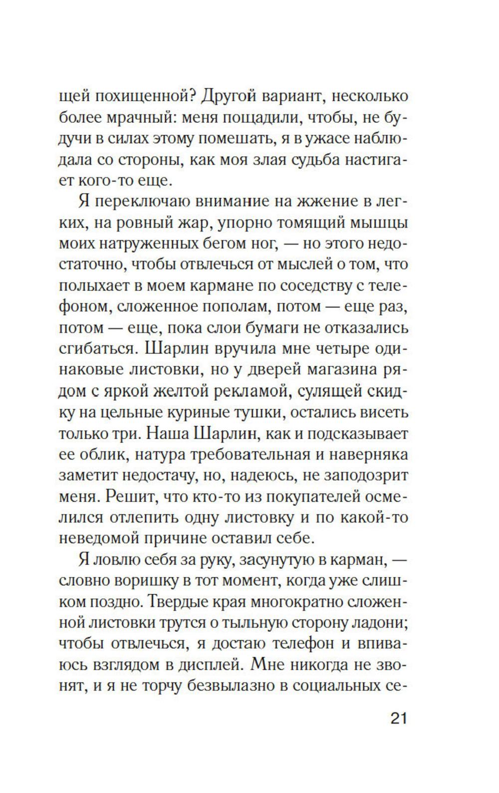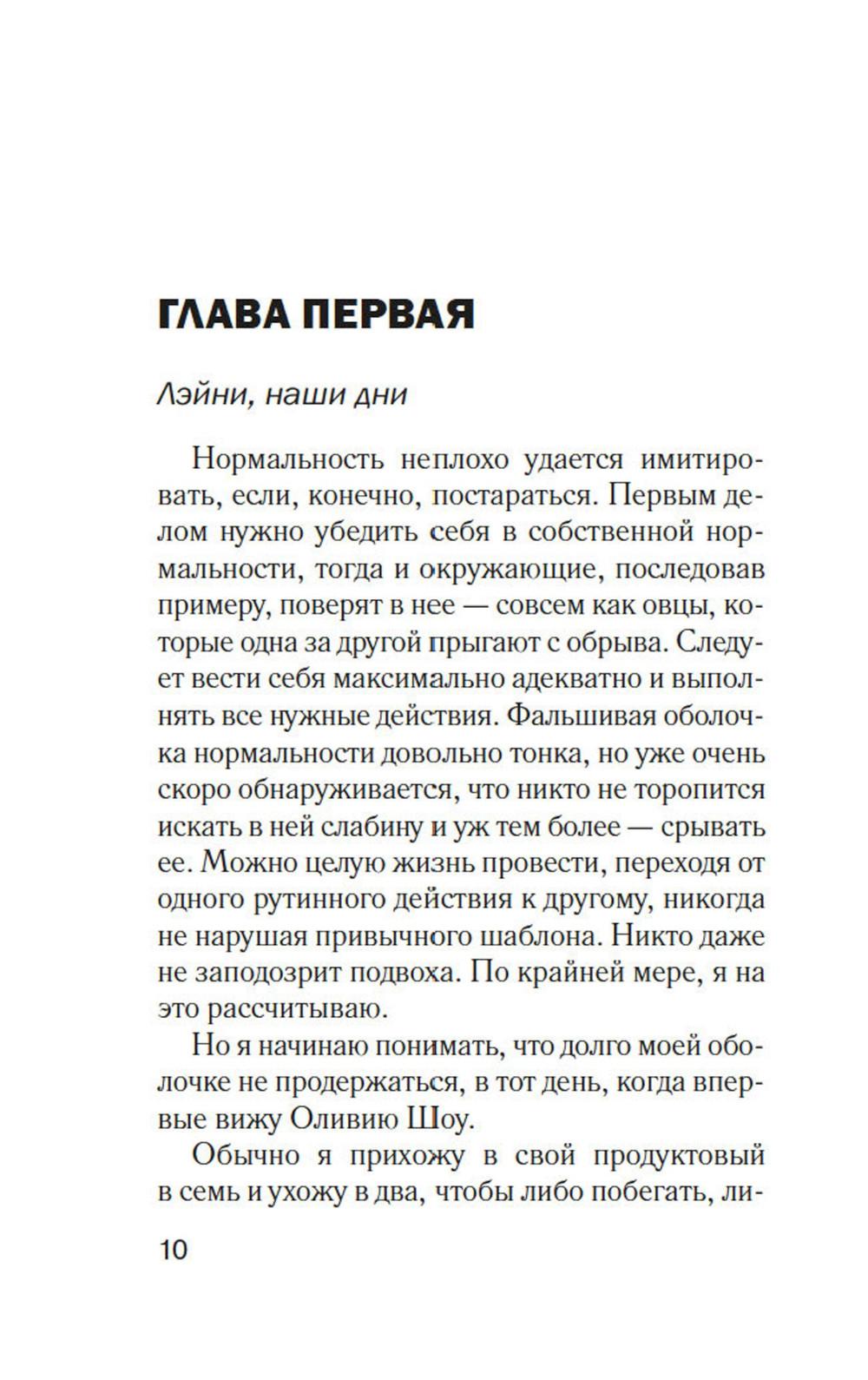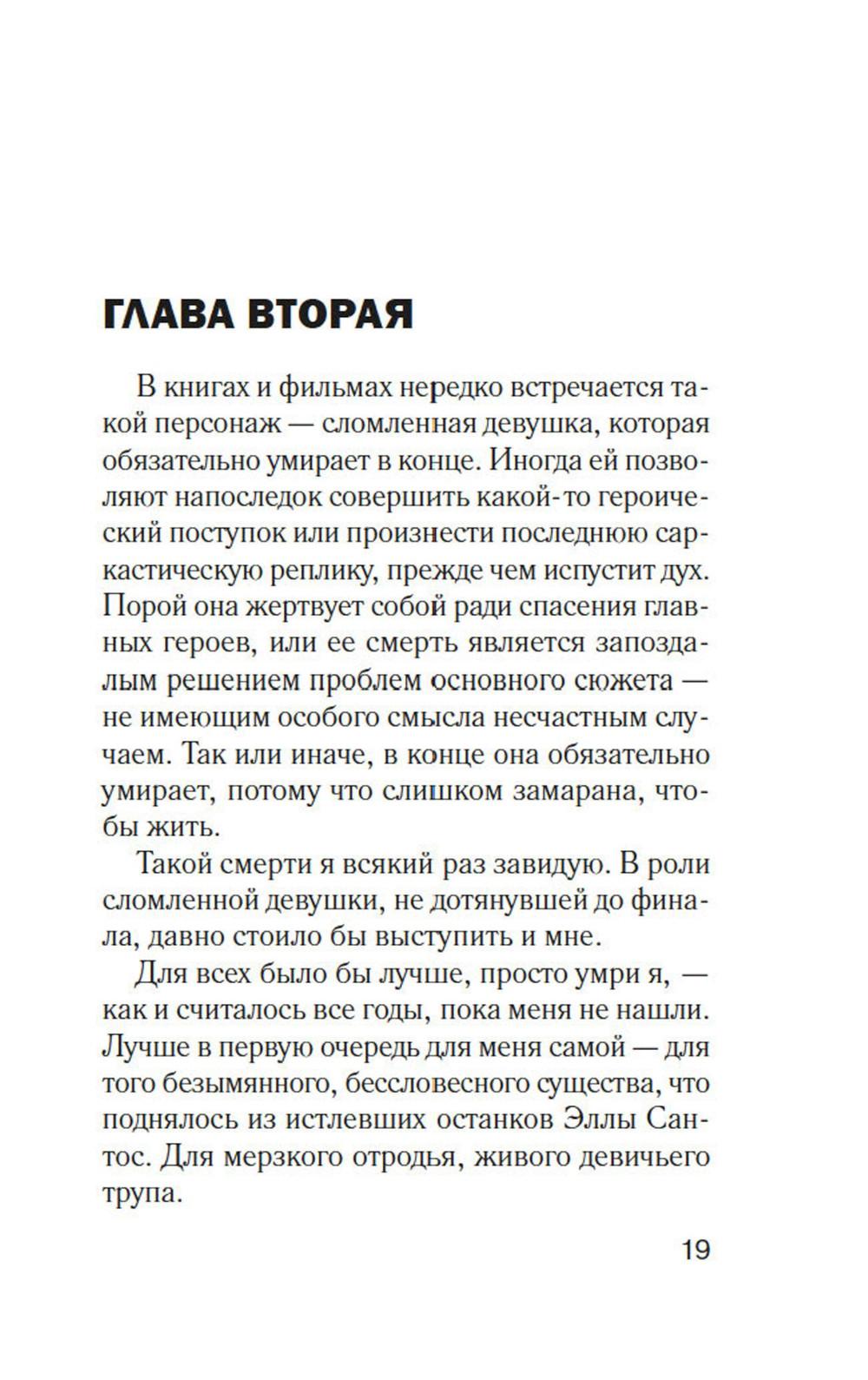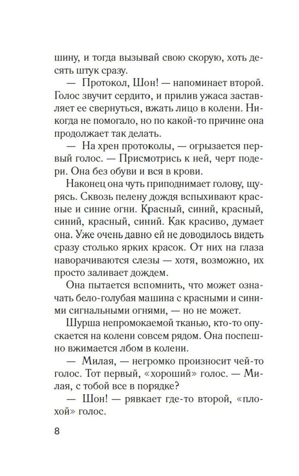СОДЕРЖИТ ИНФОРМАЦИЮ О НАРКОТИЧЕСКИХ ИЛИ ПСИХОТРОПНЫХ ВЕЩЕСТВАХ, УПОТРЕБЛЕНИЕ КОТОРЫХ ОПАСНО ДЛЯ ЗДОРОВЬЯ. ИХ НЕЗАКОННЫЙ ОБОРОТ ВЛЕЧЕТ УГОЛОВНУЮ ОТВЕТСТВЕННОСТЬ. Насилие калечит и тело, и душу, ломает судьбы людей. Тринадцать лет назад маньяк похитил десятилетнюю Эллу Сантос, а через три года отпустил. Беременную. Теперь Элла носит имя Лэйн Морено и под длинными рукавами скрывает жуткие шрамы. Она работает где придется, живет словно на вокзале. Посещает психолога, употребляет антидепрессанты, а мысли о самоубийстве и страшные воспоминания отгоняет наркотиками и алкоголем. Никому на свете не доверяет. Но вот однажды с листовки о пропавших детях на Лэйн смотрит удивительно знакомое лицо: десятилетняя Оливия, совсем такая, как она сама в детстве. Дело поручено детективу Шону Ортису, именно он нашел Лэйн на обочине дороги десять лет назад и был добр к ней. Только достаточно ли это веская причина, чтобы она стала сотрудничать со следствием?..