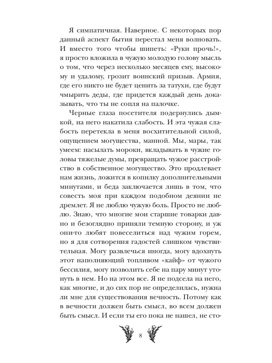 Я - тринадцатая из мар. Самая сильная или самая слабая - настоящее не определено. За моими плечами ошибка, стоившая людям жизни. Чтобы попытаться исправить хотя бы часть случившегося, я, по словам старой Веды, должна отыскать самого сильного мужчину из ныне живущих - "сильного не снаружи, но изнутри", - после чего все изменится. Согласилась бы я ступить на сложный путь, зная о том, что встречу Сидда Аркейна - потомка Древних Инквизиторов, мужчину, ненавидящего ведьм? Сохранила бы решимость, понимая, что он устроит мне самое настоящее чистилище, что нам с ним идти бок о бок по самому страшному для мар месту - Проклятой Топи? Однако, когда на кону искупление, выбор уже не стоит между борьбой за правду или раскаянием. У нас общий враг и общая "награда", и потому противостояние из ненависти не имеет смысла. Лишь бы судьба совершила обратный виток, и цена этому не важна. И потому - да, я согласилась бы.