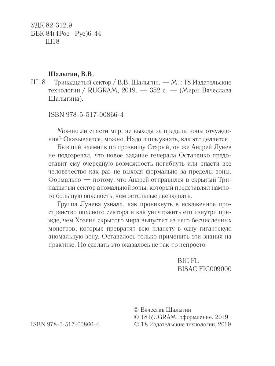 Бывший наемник по прозвищу Старый, он же Андрей Лунев не подозревал, что новое задание генерала Остапенко предоставит ему очередную возможность погибнуть или спасти все человечество как раз не выходя формально за пределы зоны. Формально - потому, что Андрей отправился в скрытый Тринадцатый сектор аномальной зоны, который представлял намного большую опасность, чем остальные двенадцать.