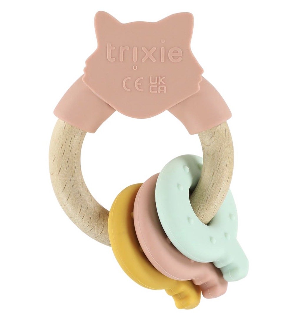 Trixie Baby Teether Ring, 0+ мес., натуральный цвет - материалы: дерево и силикон - безопасная и приятная на ощупь развивающая игрушка для младенцев, предназначенная для прорезывания зубов и стимуляции моторики. Деревянное кольцо и мягкие силиконовые элементы идеально подходят для маленьких ручек: ребёнок может держать, щупать и грызть, что помогает облегчить зуд десен и развивать сенсорные навыки и координацию.