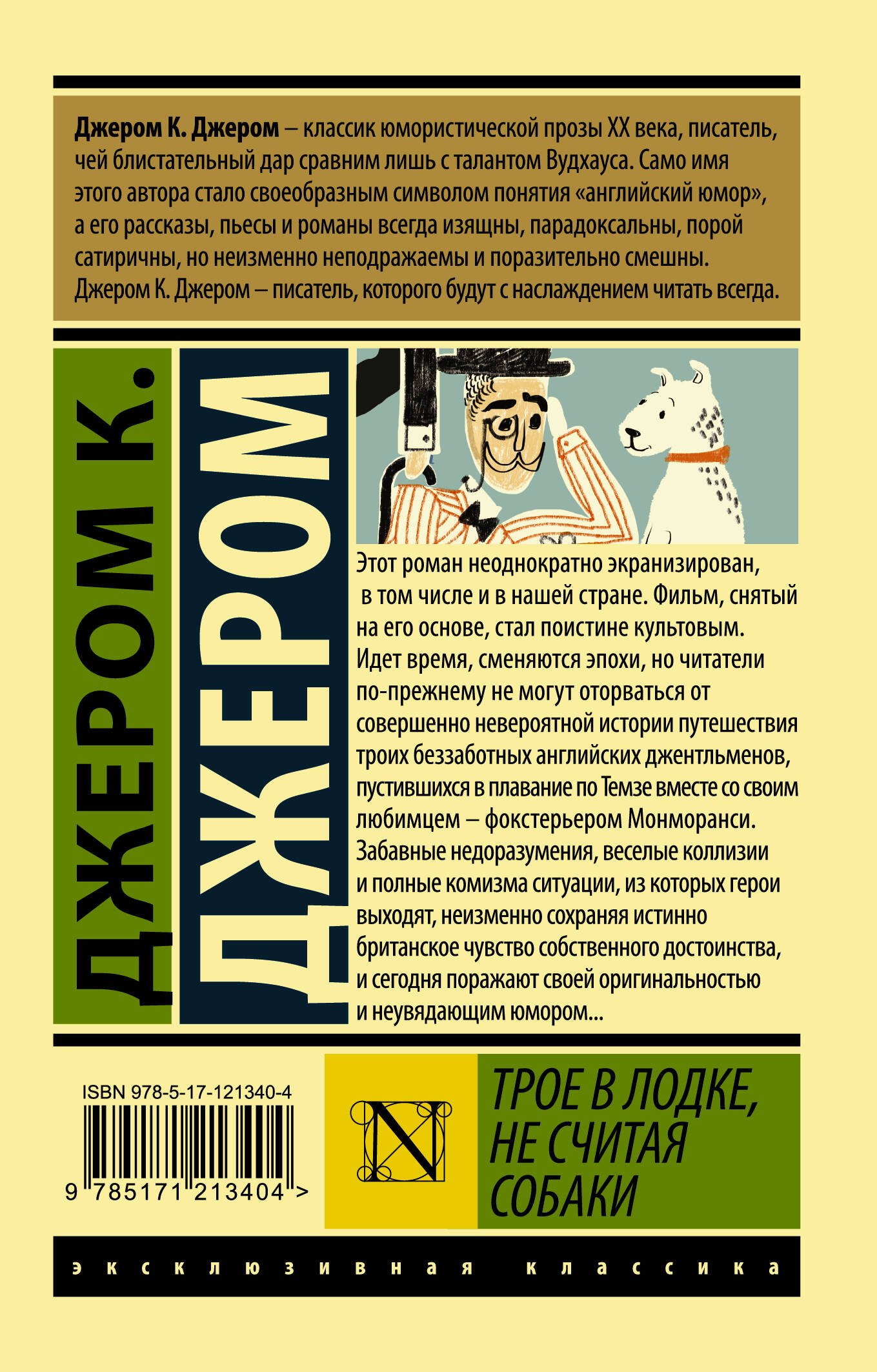 Этот роман неоднократно экранизирован, в том числе и в нашей стране. Фильм, снятый на его основе, стал поистине культовым. Идет время, сменяются эпохи, но читатели по-прежнему не могут оторваться от совершенно невероятной истории путешествия троих беззаботных английских джентльменов, пустившихся в плавание по Темзе вместе со своим любимцем - фокстерьером Монморанси. Забавные недоразумения, веселые коллизии и полные комизма ситуации, из которых герои выходят, сохраняя истинно британское чувство собственного достоинства, и сегодня поражают своей оригинальностью и неувядающим юмором...| Издательство | АСТ |