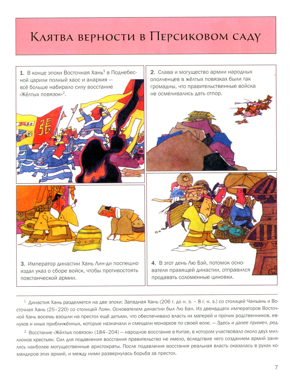 Правление династии Хань подошло к концу: ослабевшая империя охвачена восстанием «Жёлтых повязок». Кому под силу усмирить мятежников, восстановить мир и объединить Поднебесную? Вместе со своими назваными братьями Гуань Юем и Чжан Фэем, «спящим драконом» Чжугэ Ляном и «птенцом феникса» Пан Туном храбрый Лю Бэй противостоит хитрому Цао Цао и хладнокровному Сунь Цюаню в борьбе за власть над единым Китаем. Преодолевая трудности на поле боя и борясь с интригами, Лю Бэй проходит путь от простого торговца циновками до великого героя Поднебесной. Книга предназначена для семейного чтения.| Издательство | Шанс |