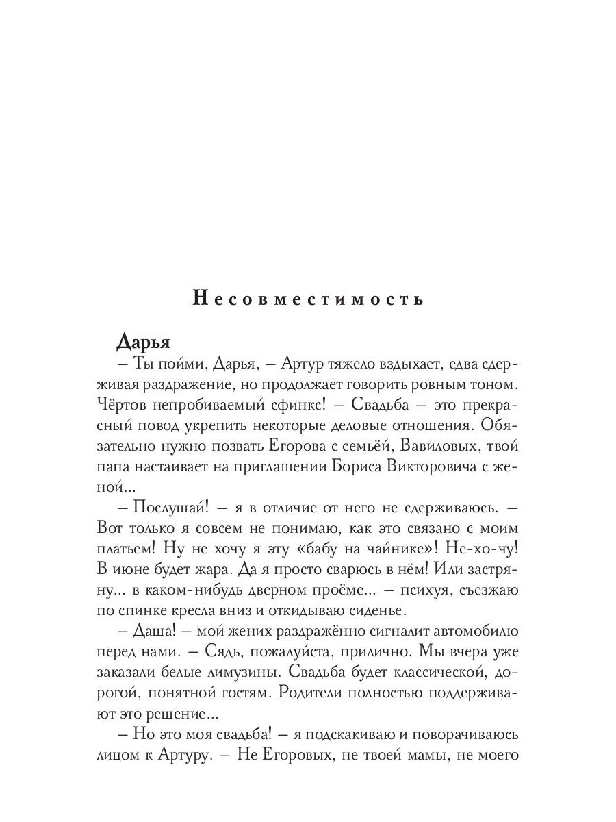 Егор - пошлый романтик, беспредельщик, постоянный клиент отдела полиции. За него моему папе уже приготовили звание майора. А я... Через месяц я выхожу замуж за приличного, надёжного, и как там ещё говорит мама? Да неважно, что она говорит! Потому что в мою жизнь уже ворвался Егор. И показал, что до нашего первого сумасшедшего поцелуя, до первой жаркой ночи я не жила, а так... имитировала. Только вот почему моё свадебное платье всё ещё висит на дверце шкафа? И я собственной рукой подписываю свадебные приглашения?