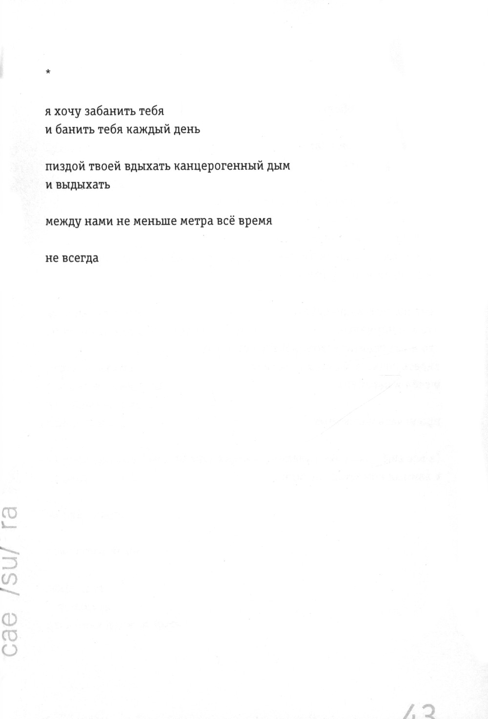 Настя Денисова родилась в Ленинграде в 1984 году. Поэтесса, видеохудожница. Публиковалась в антологиях «12 поэтов из России» (Латвия), Windows on the World: Fifty Writers, Fifty Views (США), Life Stories, Death Sentences: Contemporary Russian-Language LGBTQ+Writing (США), Tutta la pienezza nel mio petto (Италия), Antologia poeziei ruse contemporane Editura Paralela 45 (Румыния), сборниках «Под одной обложкой» (Казахстан), «Это ужас, котики», журналах «Воздух», «Двоеточие», «Контекст» (Украина), «НЛО», TextOnly и др. Поэтические книги «Ничего нет» (2006) и «Вкл» (2010). Тексты переводились на английский, итальянский, латышский и румынский языки. Живёт в Санкт-Петербурге.| Издательство | Порядок слов |