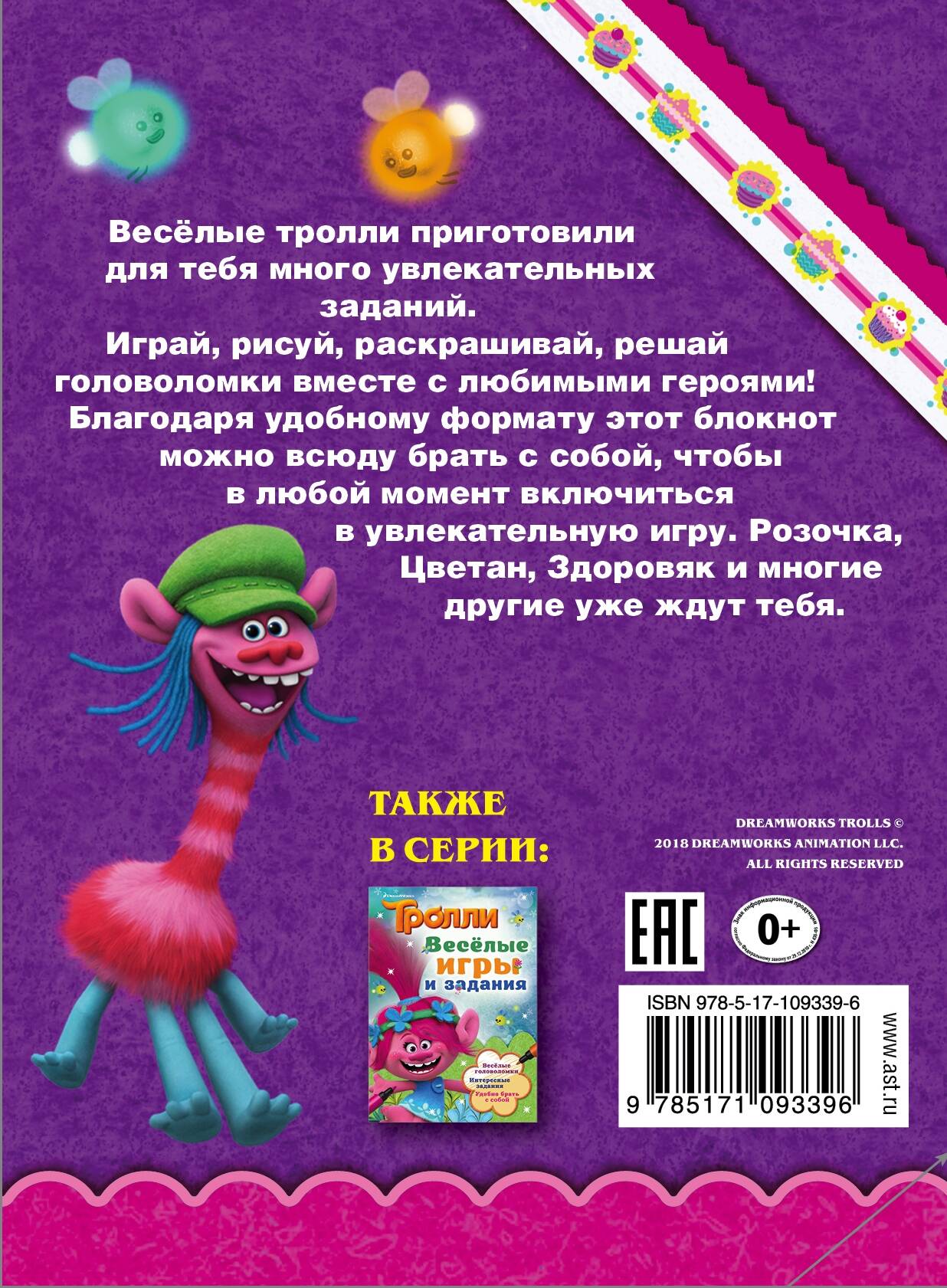 Весёлые тролли приготовили для тебя много увлекательных заданий. Играй, рисуй, раскрашивай, решай головоломки вместе с любимыми героями! Благодаря удобному формату этот блокнот можно всюду брать с собой, чтобы в любой момент включиться в увлекательную игру. Розочка, Цветан, Здоровяк и многие другие уже ждут тебя.| Издательство | ИЗДАТЕЛЬСТВО "АСТ" |