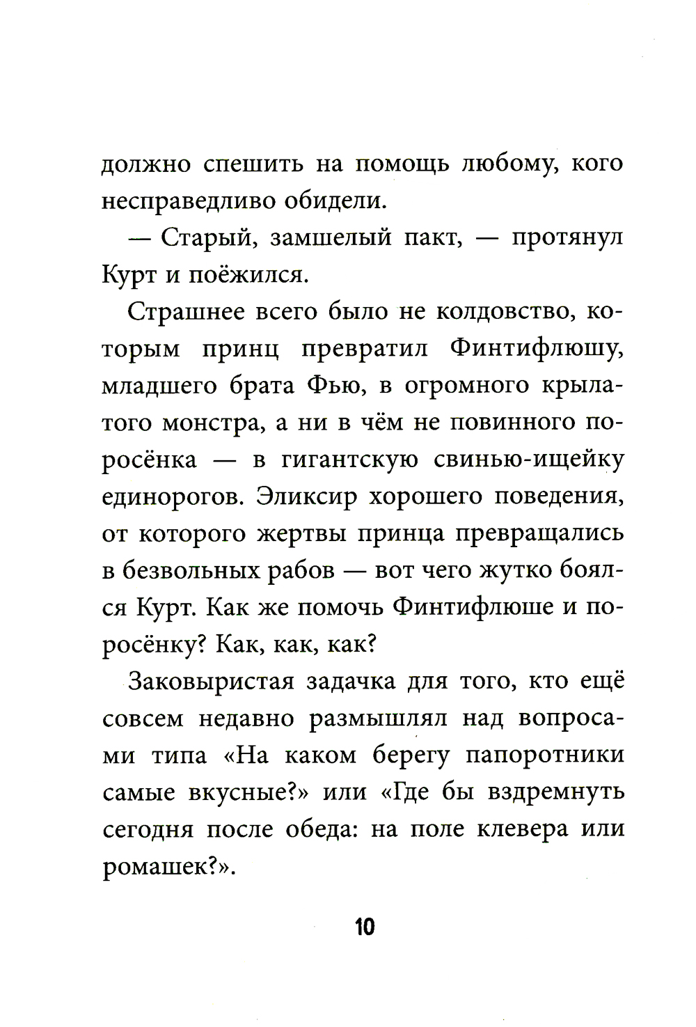 Однажды белоснежный единорог, прекрасная принцесса и маленькая птичка решили напасть на замок принца... Странное начало сказки, скажете вы? И будете правы! Но что остаётся Курту и его друзьям, если принц оказался злым волшебником? Кто, кроме них, спасёт его пленников - заколдованных зверей? Ведь на свете не так много волшебных единорогов, подходящих для этой героической работы. Хотя... Постойте-ка! Кто там выглядывает из зарослей? Неужели ещё один чудесный и необычный единорог?!| Издательство | Эксмо |