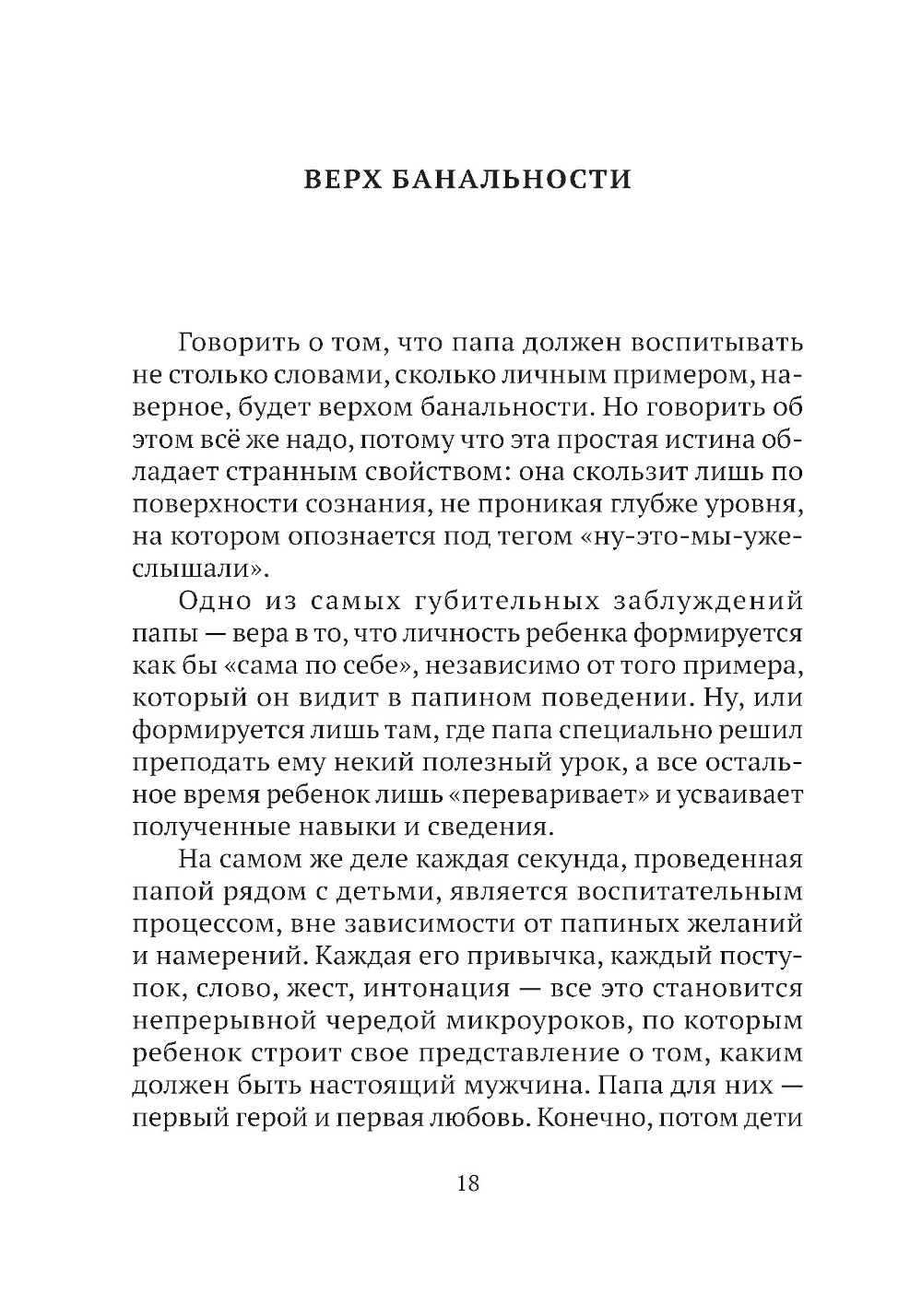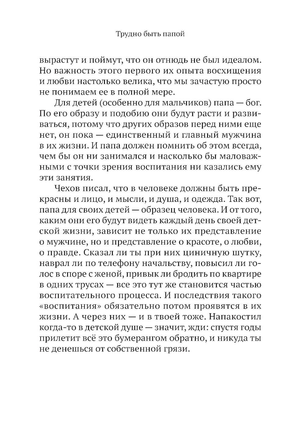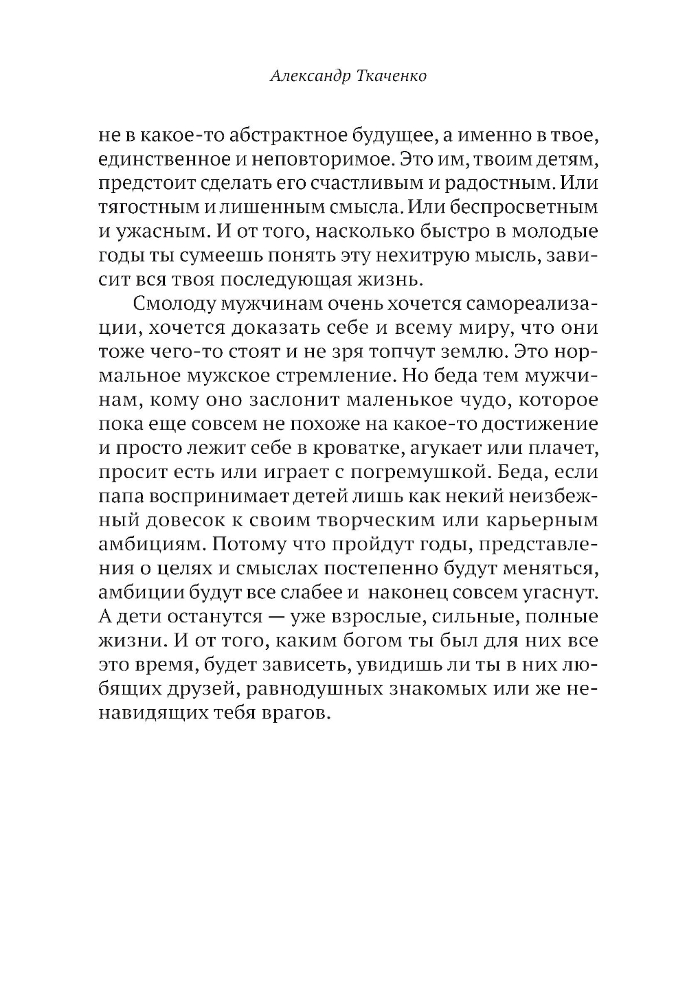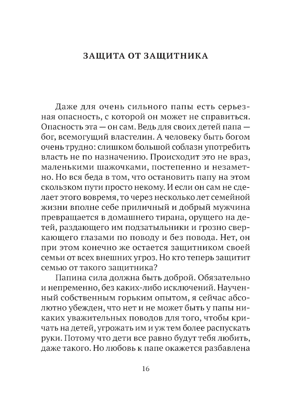 Для детей папа - объект восхищения и подражания: умный, сильный и обязательно добрый, способный научить своим примером главному - вере, любви, милосердию. А также научить плавать, разводить костер, ловить рыбу, запускать воздушного змея и еще тысяче других премудростей, без которых сложно представить себе детство. Но легко ли папе быть таким на самом деле? Известный православный писатель, психолог, постоянный автор журнала «Фома», Александр Ткаченко делится непростым опытом отца многодетного семейства. Серьезные темы и проблемные ситуации рассмотрены с тонкой самоиронией, предельной искренностью и наполнены живыми картинами из практики воспитания собственных детей.| Издательство | Изд. НИКЕЯ |
