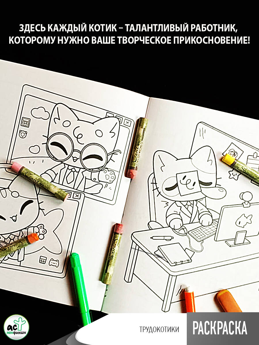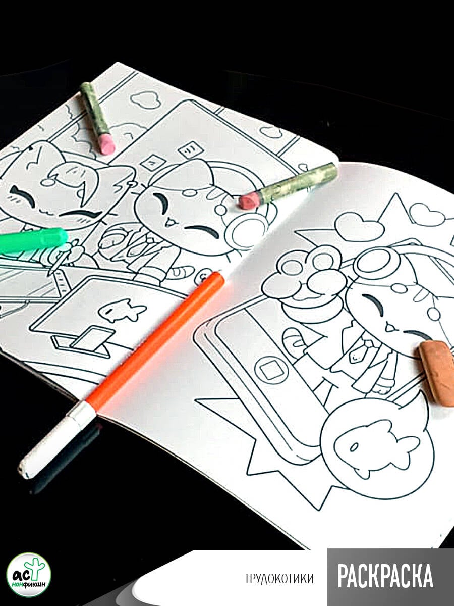 Приглашаем вас в увлекательное путешествие по миру котов-трудоголиков, где каждый кабинет - это художественная мастерская, а каждый котик - талантливый работник, нуждающийся в вашем творческом прикосновении! "Трудокотики" предлагают вам стать соавтором этих знакомых офисных историй. Оживите их с помощью ярких цветов, превращая серые будни в красочный калейдоскоп. Благодаря этой раскраске вы можете посмеяться с коллегами над знакомыми ситуациями, или насладиться медитативным процессом в одиночестве, забыв о стрессе и проблемах. Пусть кошачий дзен воцарится в вашем офисе!| Издательство | Издательство "АСТ" |