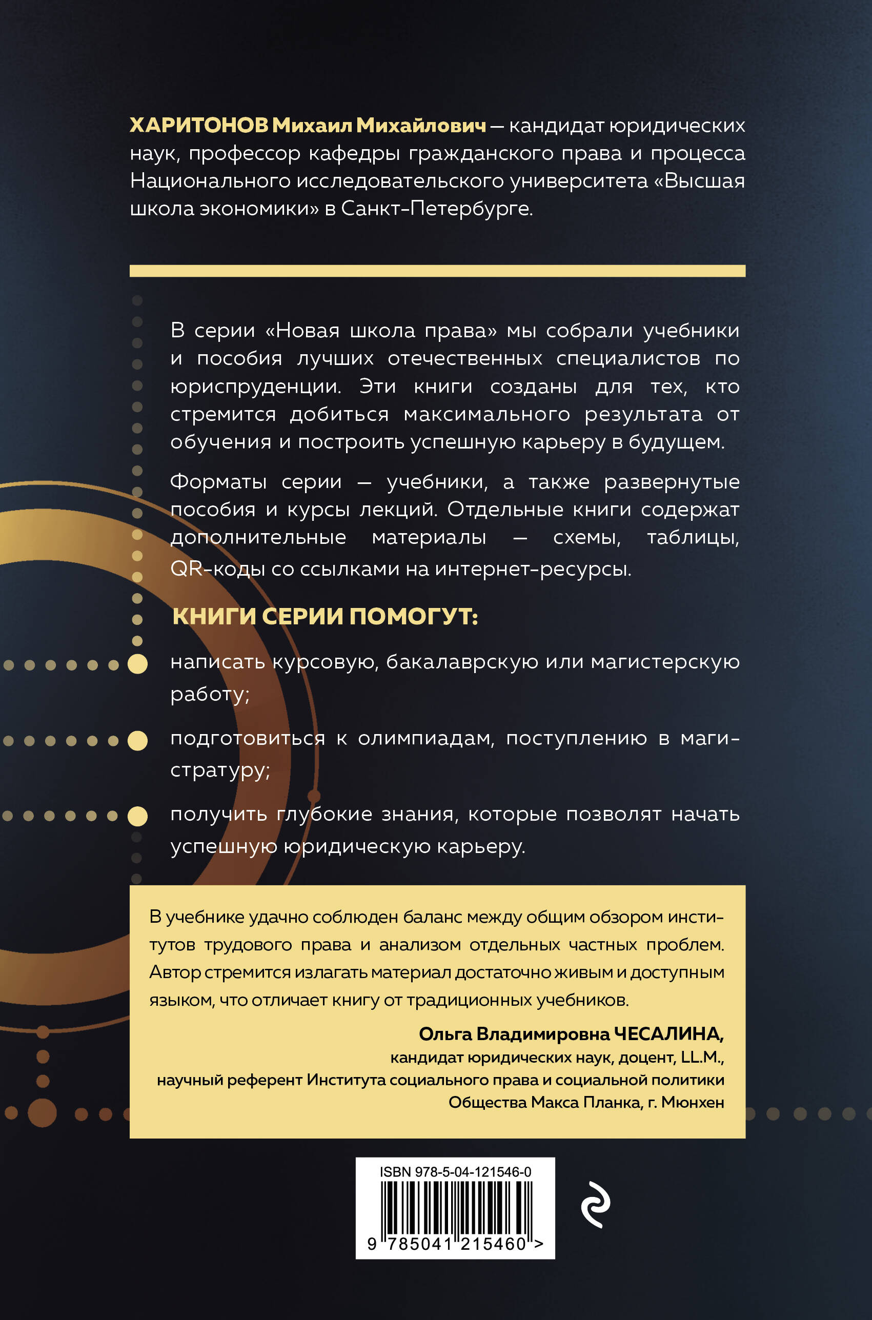 Доступный, актуальный и понятный учебник трудового права, который поможет освоить предмет в вузе или колледже, сдать экзамен, написать бакалаврскую или магистерскую работу. Учебник подготовлен в соответствии с ФГОС высшего профессионального образования по специальности «Юриспруденция» и программой курса «Трудовое право». Предназначено для бакалавров, магистрантов, аспирантов, обучающихся по юридической специальности. Курс поможет изучить основные механизмы трудового права и даст направление для дальнейшего развития как будущему юристу-практику, так и тем, кто планирует академическую карьеру. Главные особенности книги: - соответствие ФГОС; - полный перечень тем; - мощная теоретическая база; - ориентация на действующее законодательство; ХАРИТОНОВ Михаил Михайлович - кандидат юридических наук, профессор кафедры гражданского права и процесса Национального исследовательского университета «Высшая школа экономики» в Санкт-Петербурге| Издательство | Эксмо |