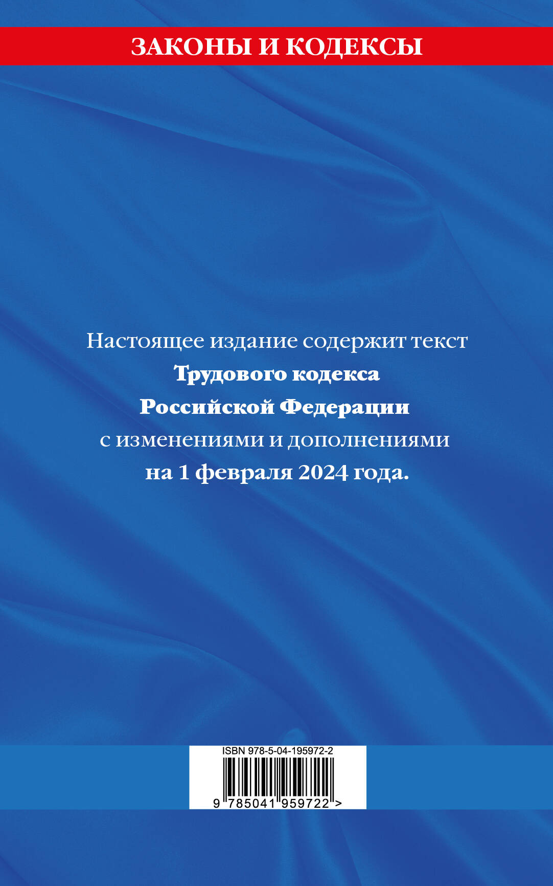Настоящее издание содержит текст Трудового кодекса Российской Федерации в редакции, действующей на 1 февраля 2024. В данной книге приводится вся актуальная информация на дату подписания издания в печать.| Издательство | ООО "Издательство "Эксмо" |