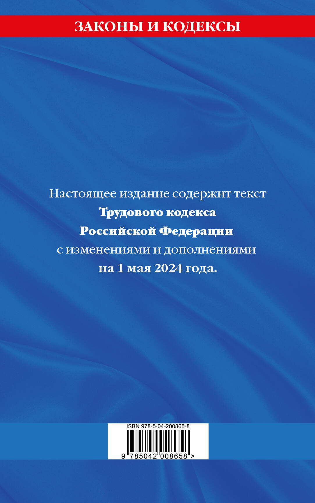 Настоящее издание содержит текст Трудового кодекса Российской Федерации в редакции, действующей на 1 мая 2024. В данной книге приводится вся актуальная информация на дату подписания издания в печать.| Издательство | ООО "Издательство "Эксмо" |